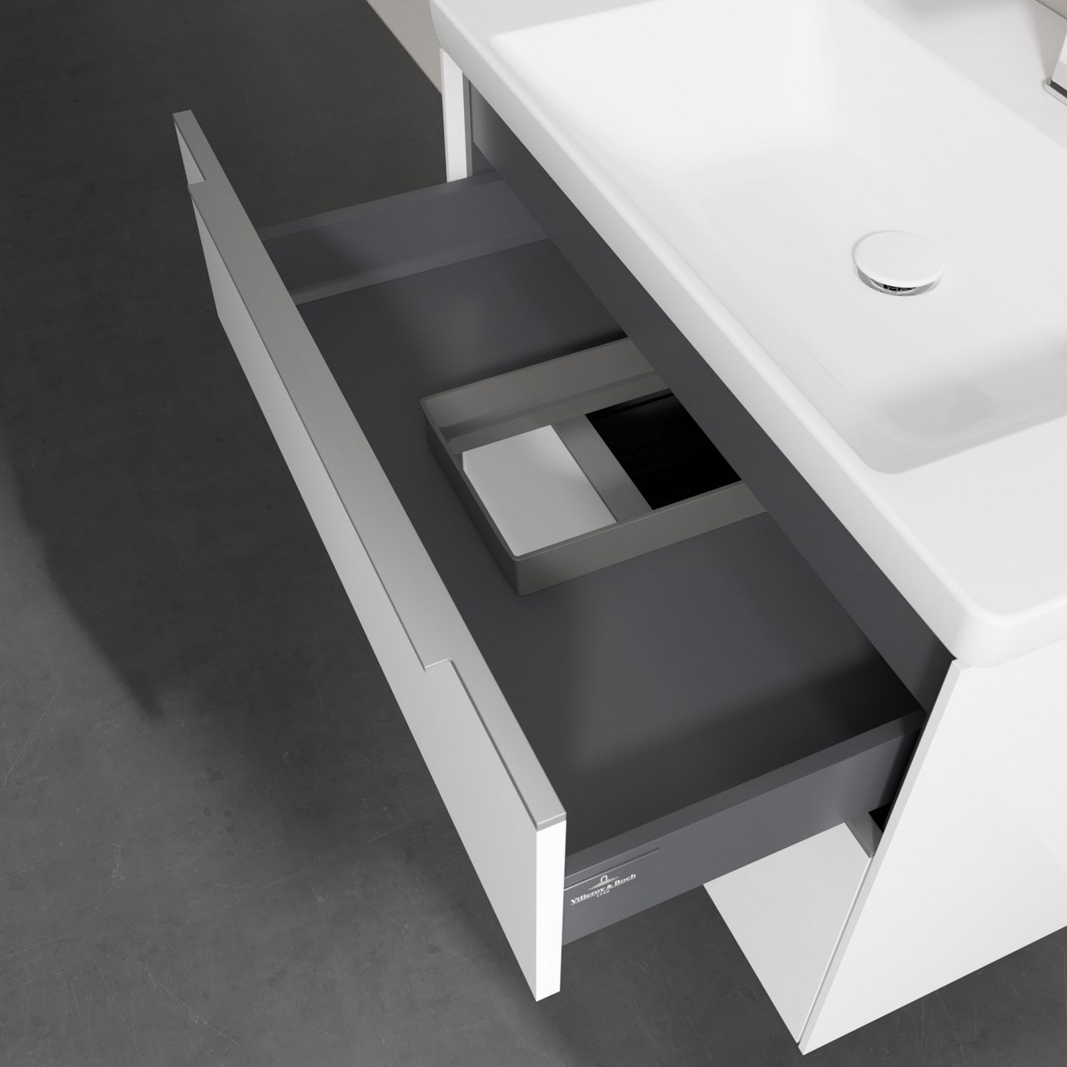 - kein Umfallen oder Verrutschen von Pflegeprodukten in den Schubladen dank rutschhemmendem Boden