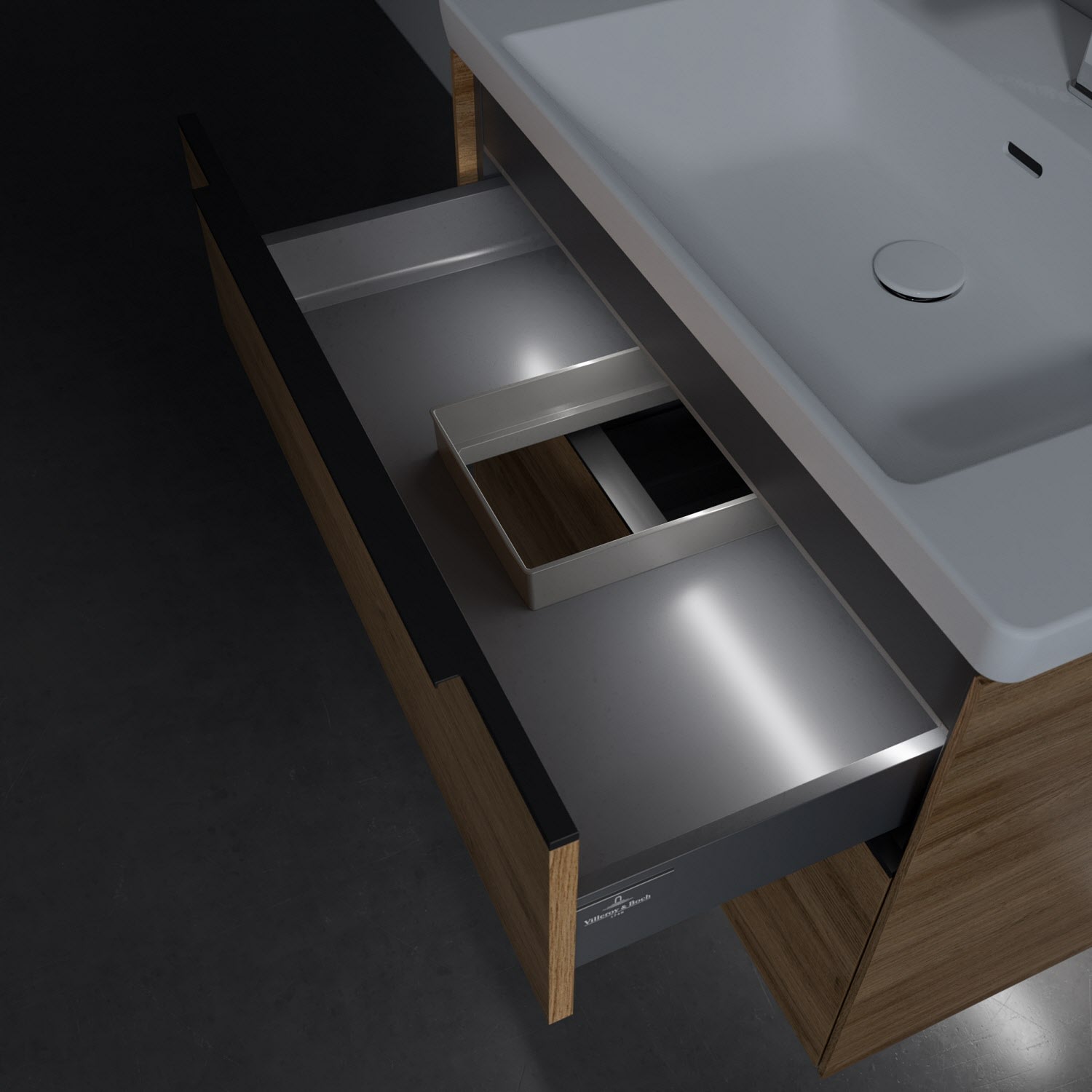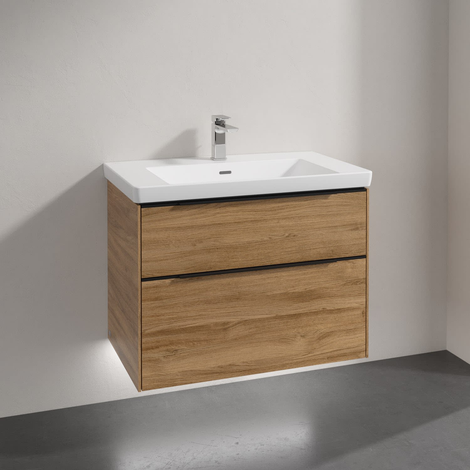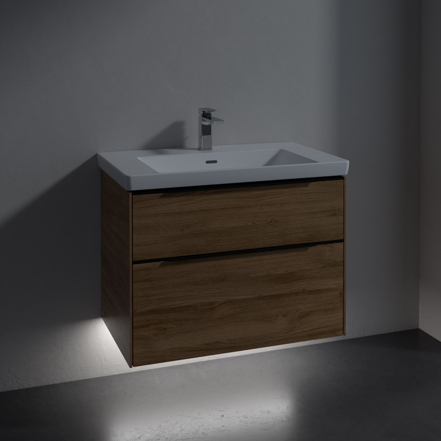 Villeroy & Boch Subway 3.0 Badmöbel-Set 80 cm mit Beleuchtung, Griff volcano black, 2 Auszüge
