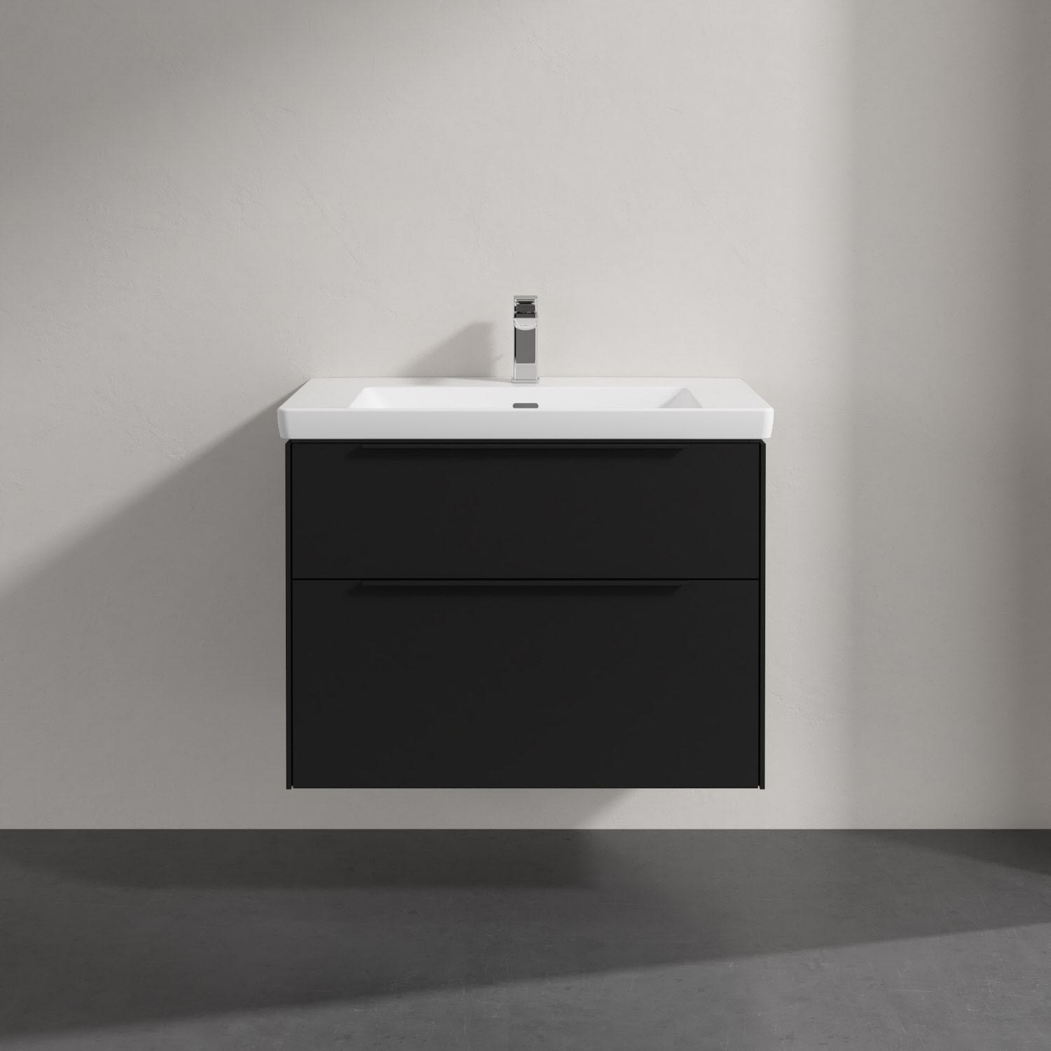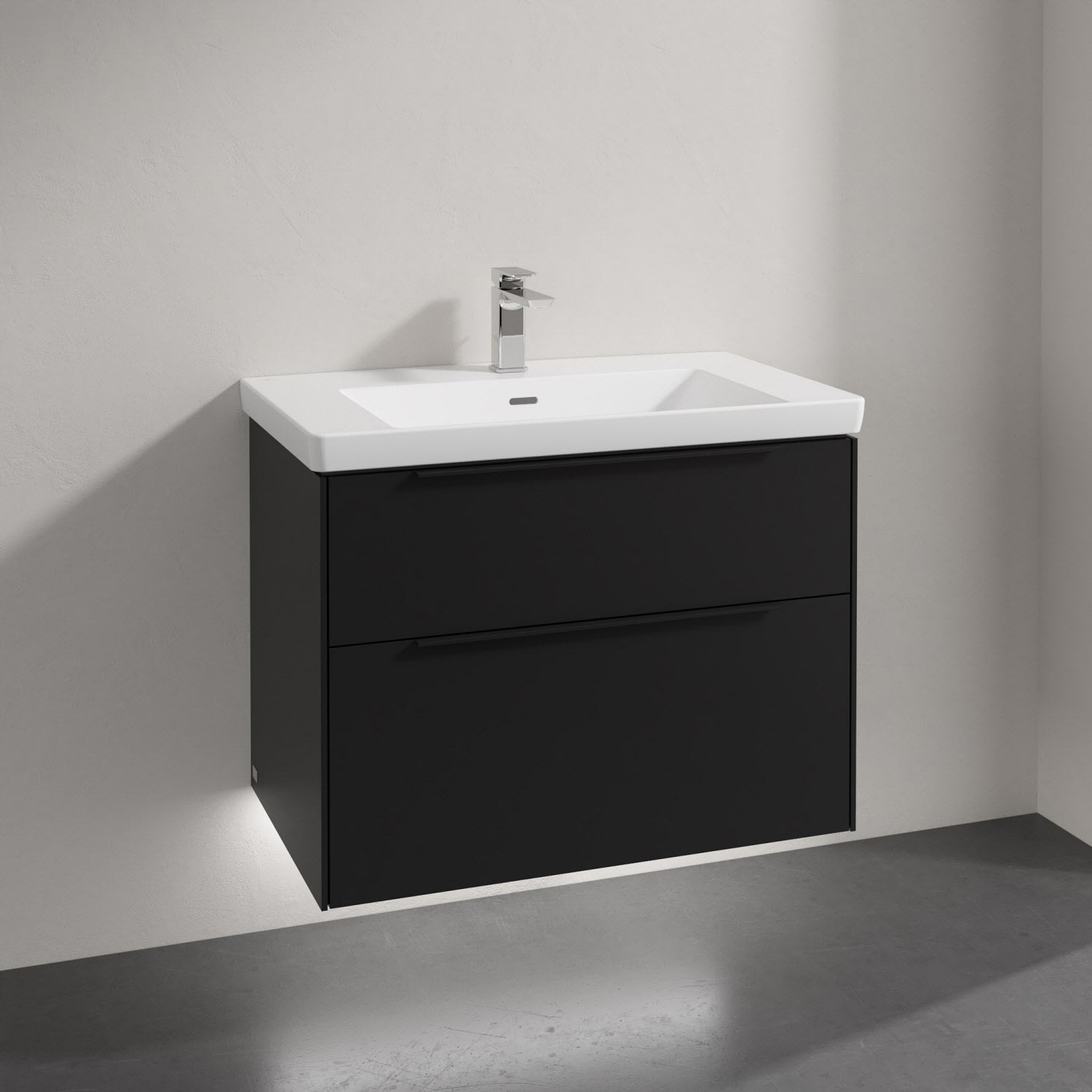 Villeroy & Boch Subway 3.0 Badmöbel-Set 80 cm mit Beleuchtung, Griff volcano black, 2 Auszüge