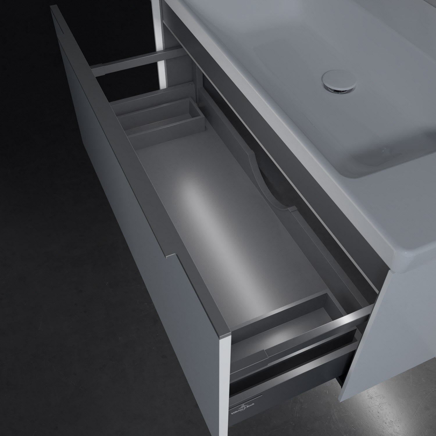 - kein Umfallen oder Verrutschen von Pflegeprodukten in den Schubladen dank rutschhemmendem Boden