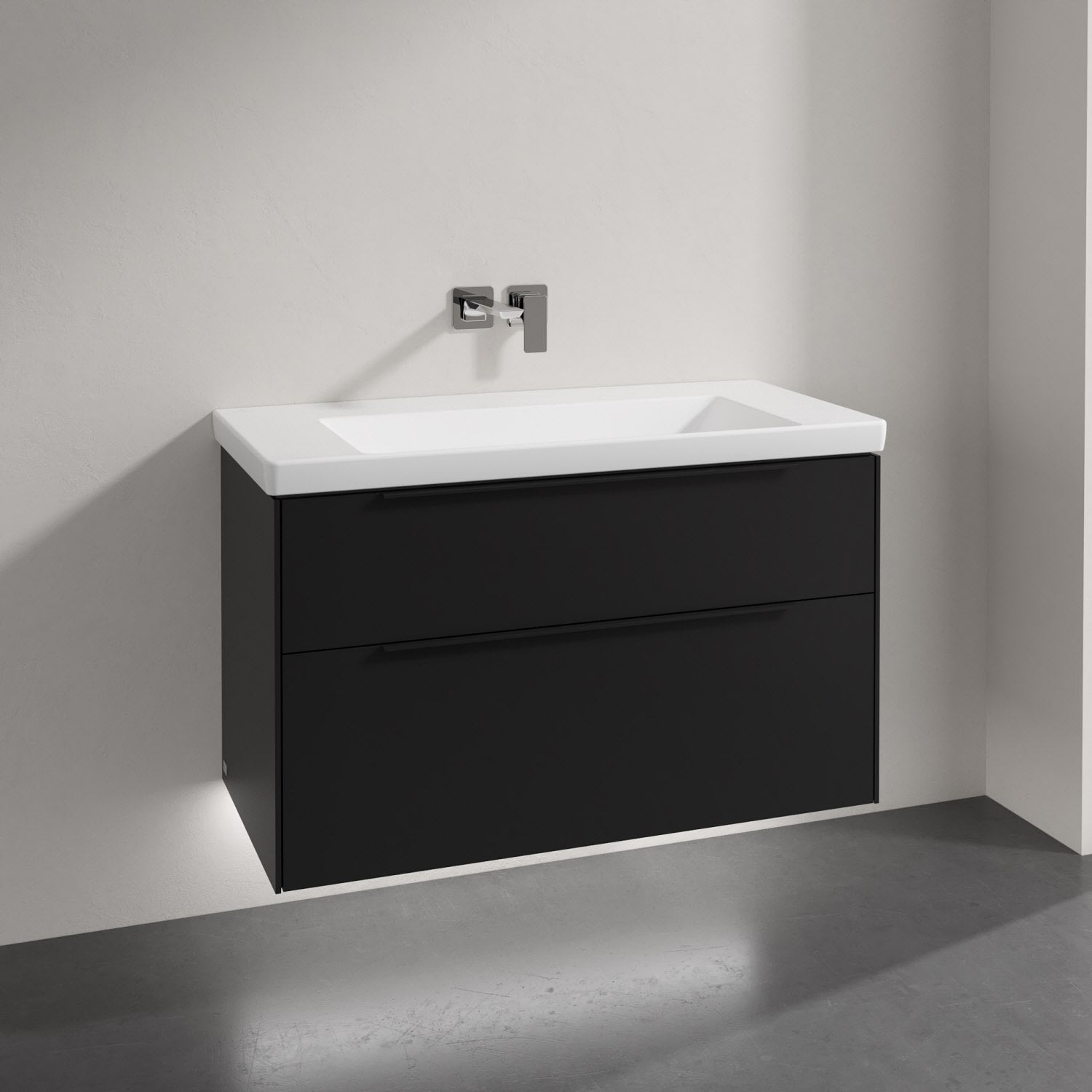 Villeroy & Boch Subway 3.0 Badmöbel-Set 100 cm mit Beleuchtung, Griff volcano black, 2 Auszüge