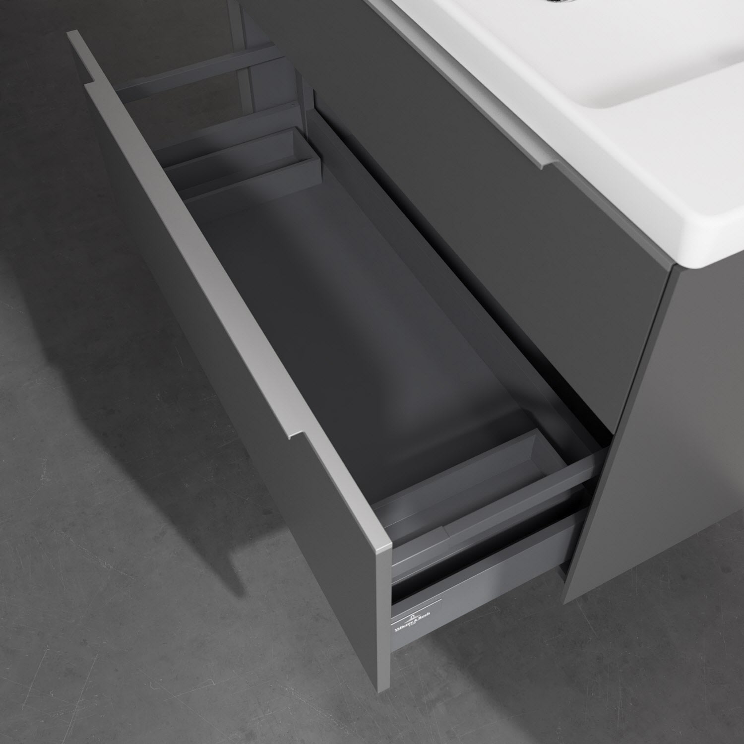 - kein Umfallen oder Verrutschen von Pflegeprodukten in den Schubladen dank rutschhemmendem Boden