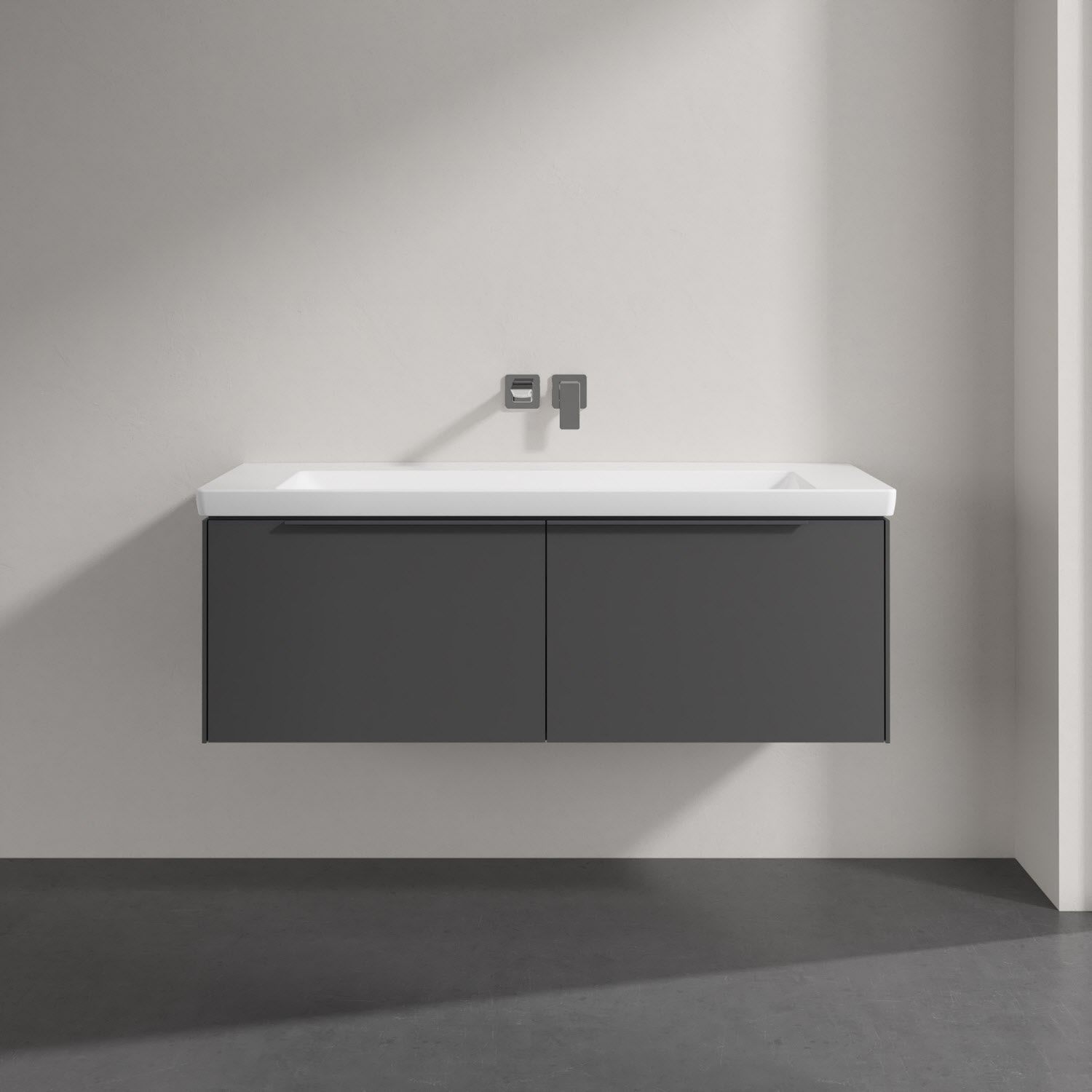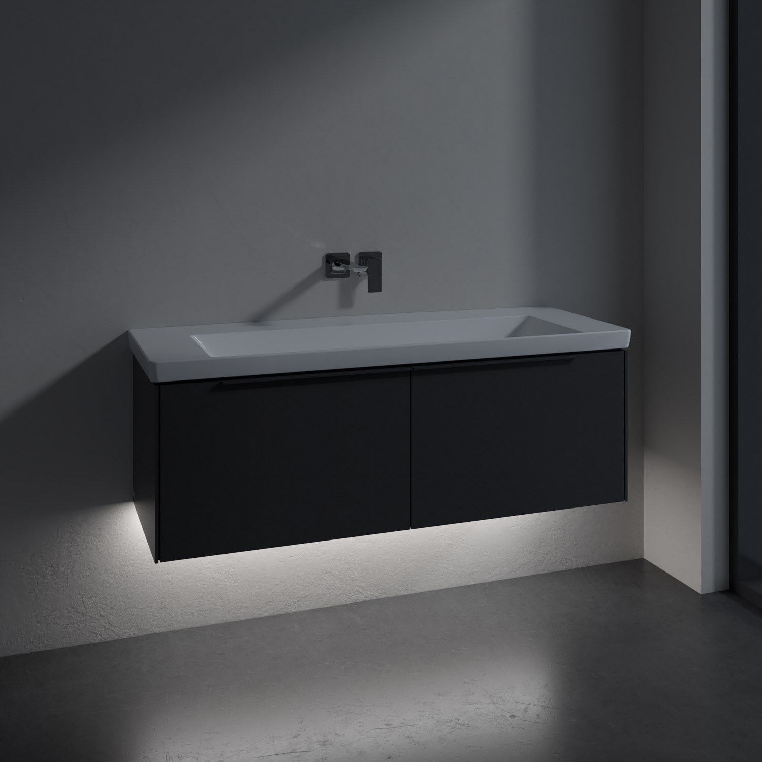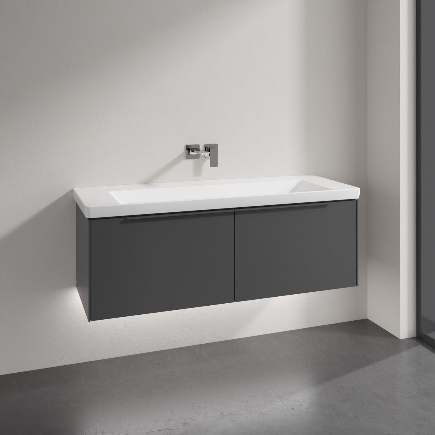 Villeroy & Boch Subway 3.0 Badmöbel-Set 130 cm mit Beleuchtung, Griff in Möbelfarbe, 2 Auszüge