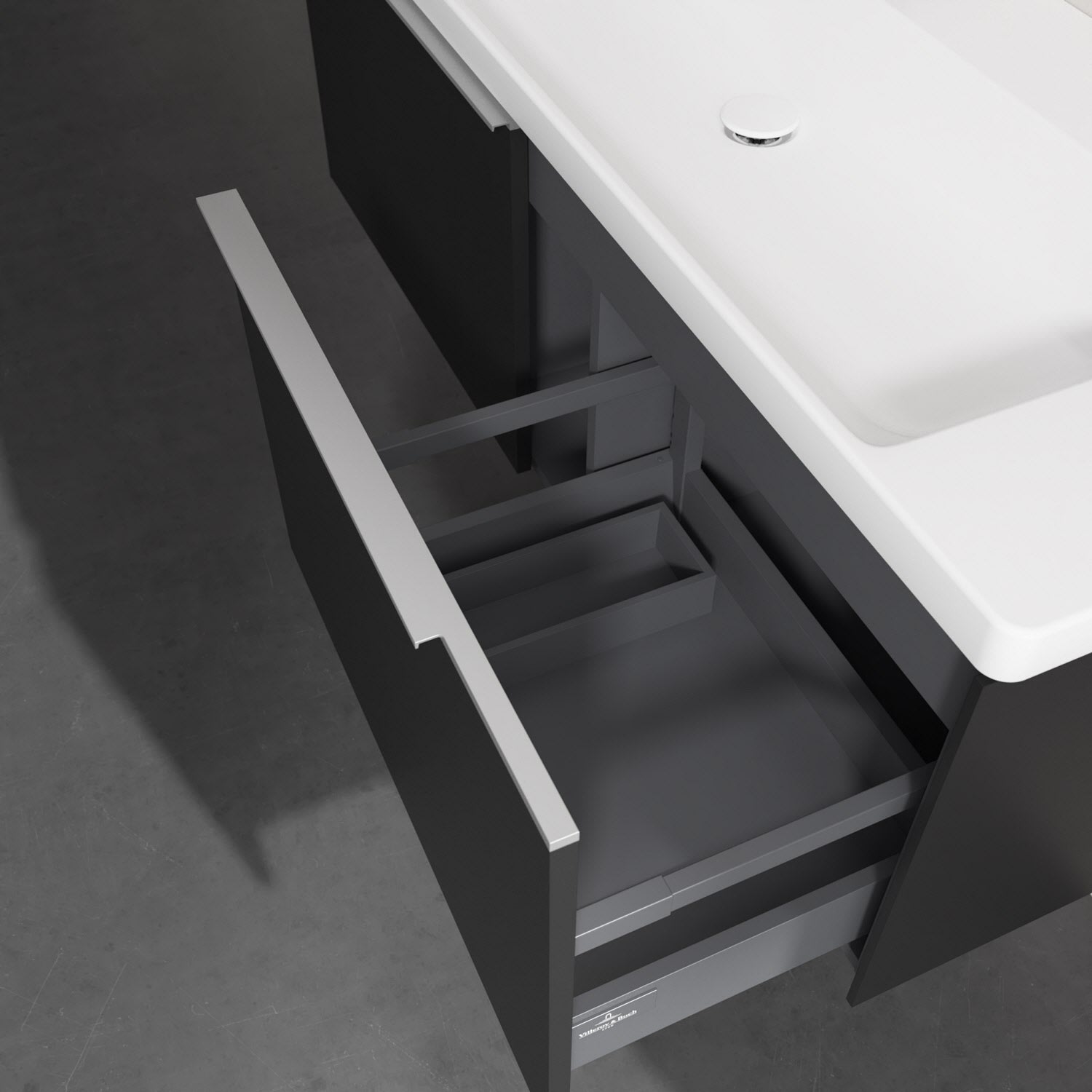- kein Umfallen oder Verrutschen von Pflegeprodukten in den Schubladen dank rutschhemmendem Boden