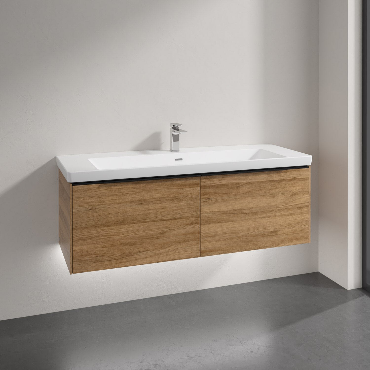 Villeroy & Boch Subway 3.0 Badmöbel-Set 130 cm mit Beleuchtung, Griff volcano black, 2 Auszüge