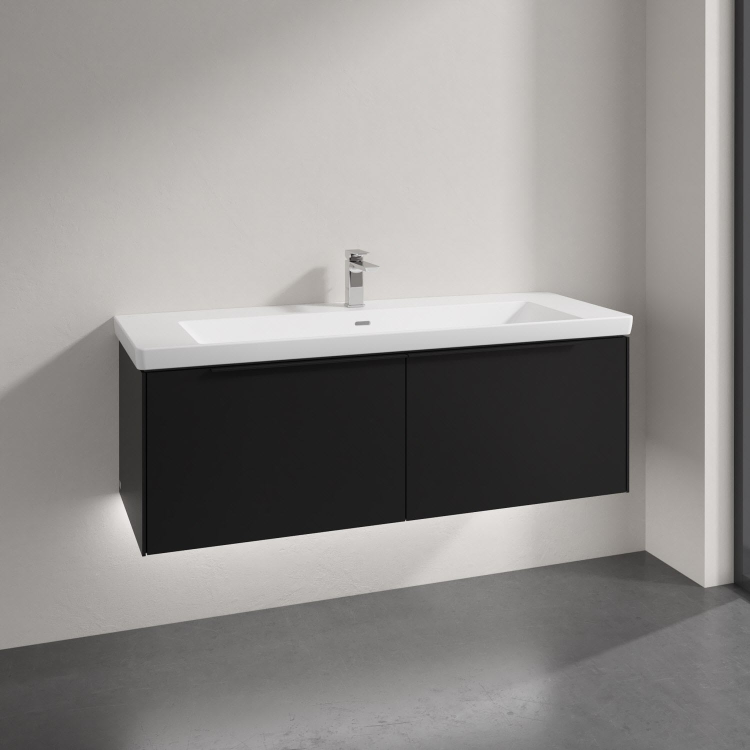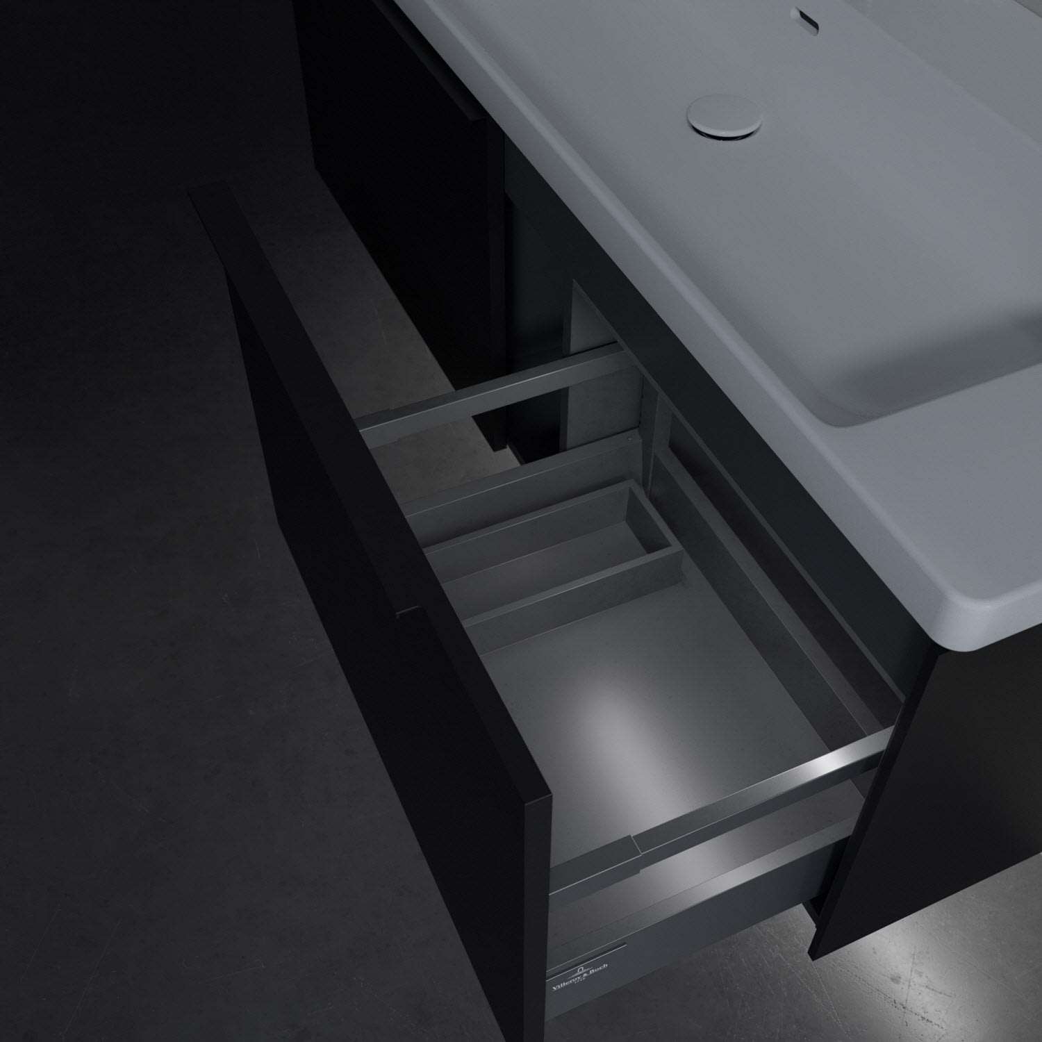 Villeroy & Boch Subway 3.0 Badmöbel-Set 130 cm mit Beleuchtung, Griff volcano black, 2 Auszüge