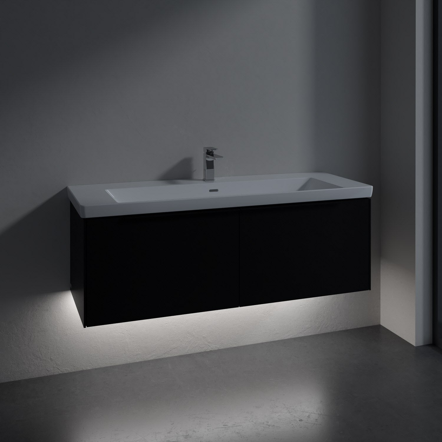 Villeroy & Boch Subway 3.0 Badmöbel-Set 130 cm mit Beleuchtung, Griff volcano black, 2 Auszüge