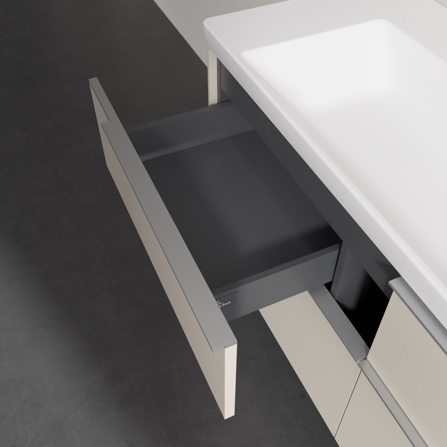 - kein Umfallen oder Verrutschen von Pflegeprodukten in den Schubladen dank rutschhemmendem Boden