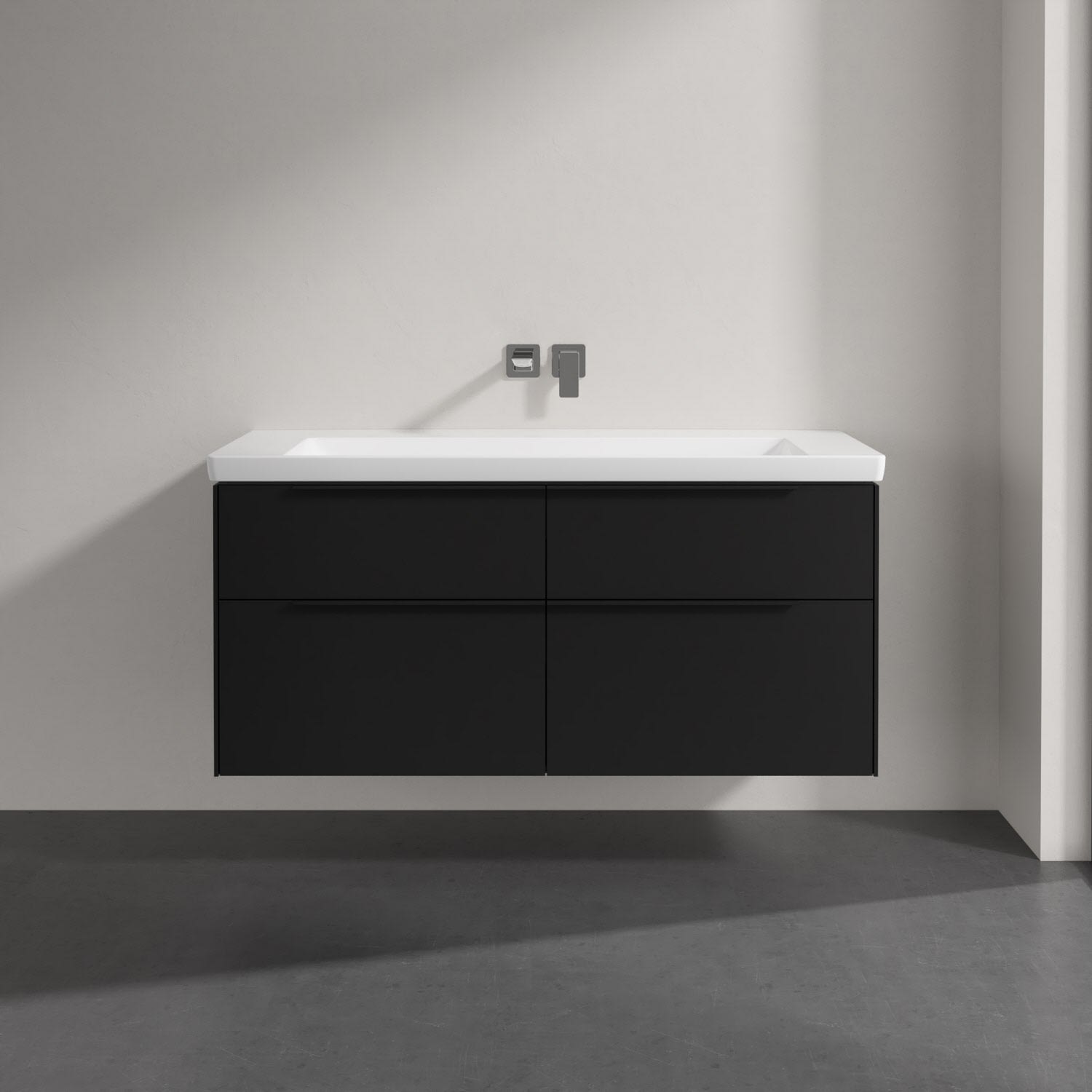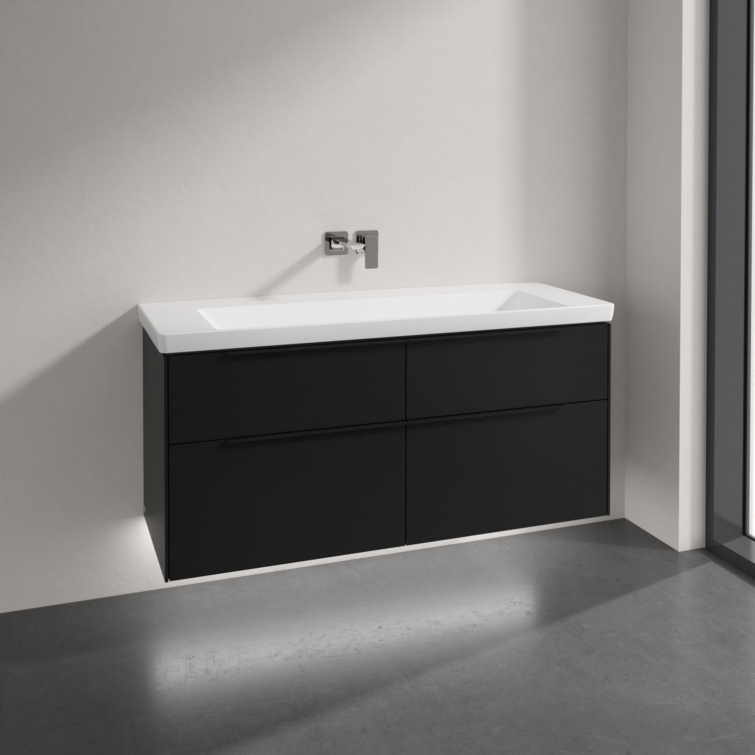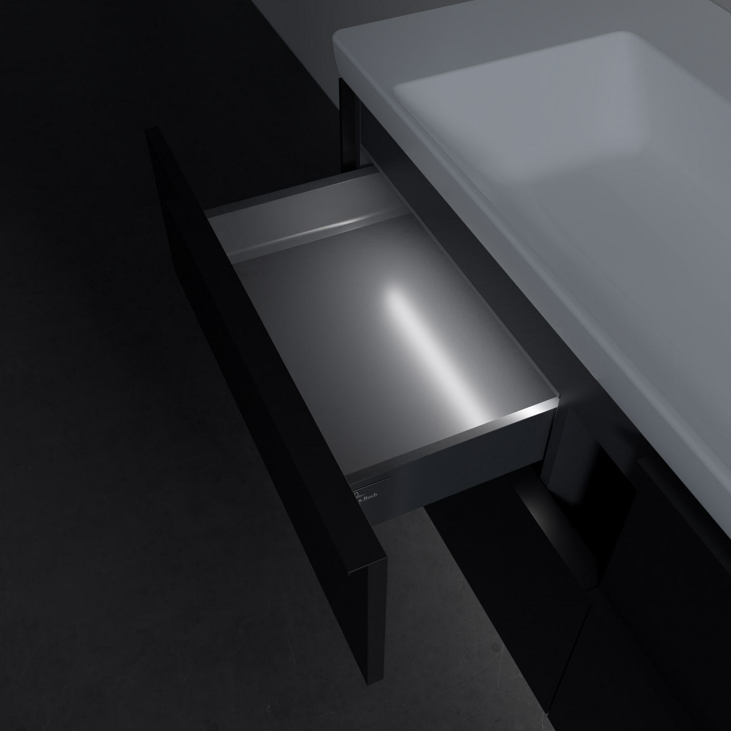 Villeroy & Boch Subway 3.0 Badmöbel-Set 130 cm mit Beleuchtung, Griff volcano black, 4 Auszüge