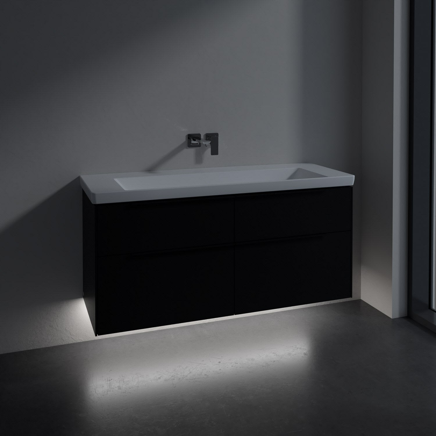 Villeroy & Boch Subway 3.0 Badmöbel-Set 130 cm mit Beleuchtung, Griff volcano black, 4 Auszüge