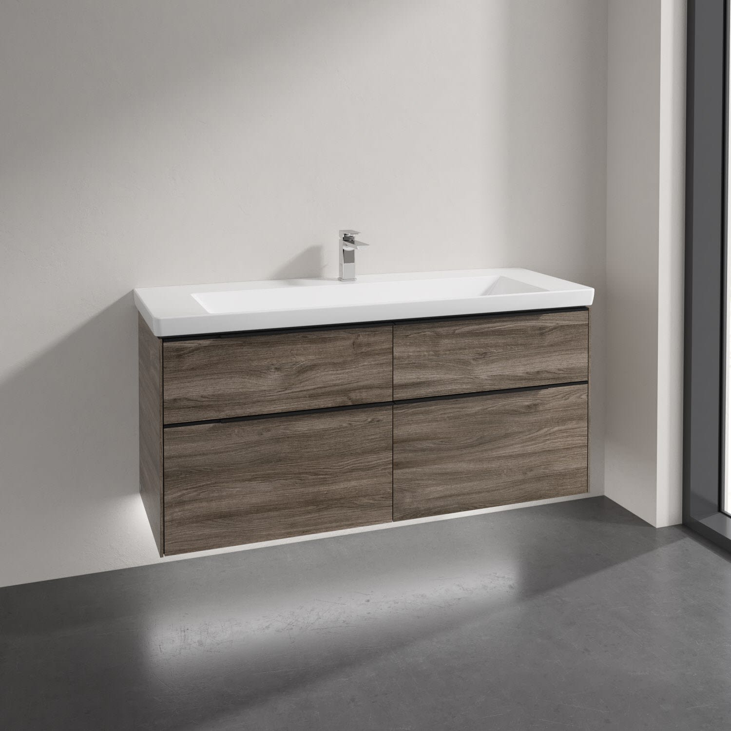 Villeroy & Boch Subway 3.0 Badmöbel-Set 130 cm mit Beleuchtung, Griff volcano black, 4 Auszüge