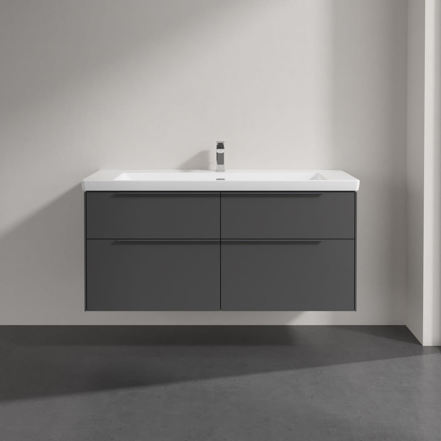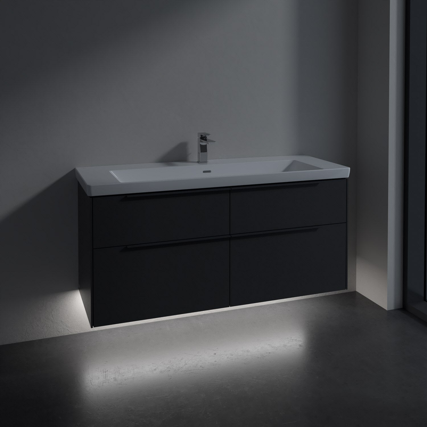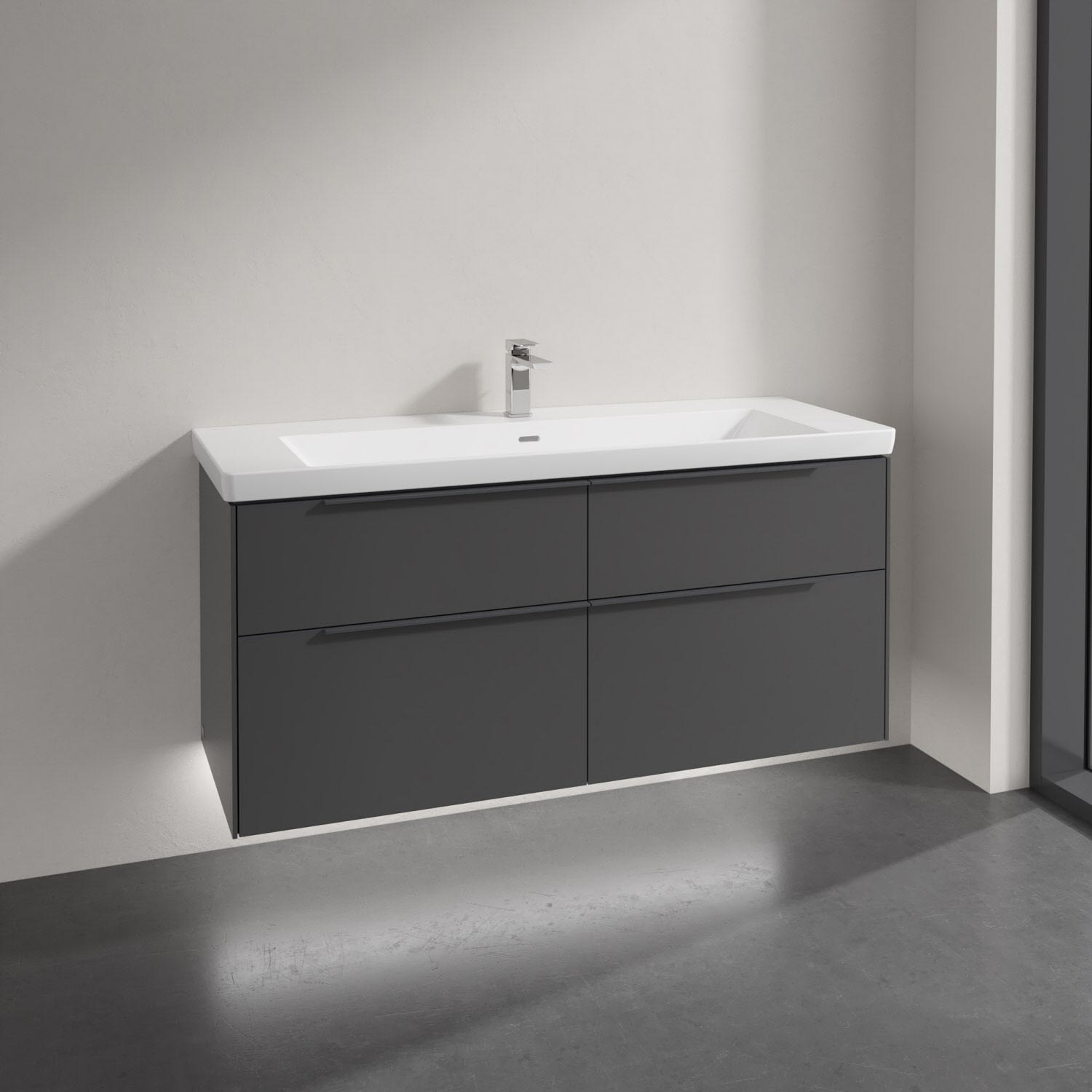 Villeroy & Boch Subway 3.0 Badmöbel-Set 130 cm mit Beleuchtung, Griff in Möbelfarbe, 4 Auszüge