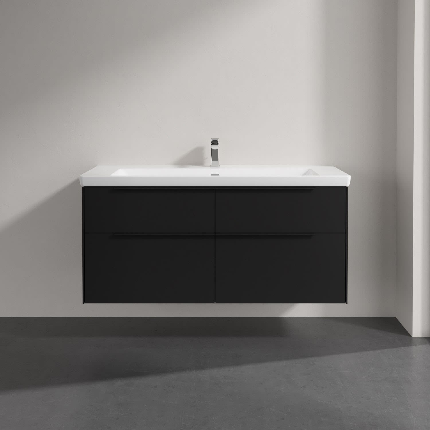 Villeroy & Boch Subway 3.0 Badmöbel-Set 130 cm mit Beleuchtung, Griff volcano black, 4 Auszüge