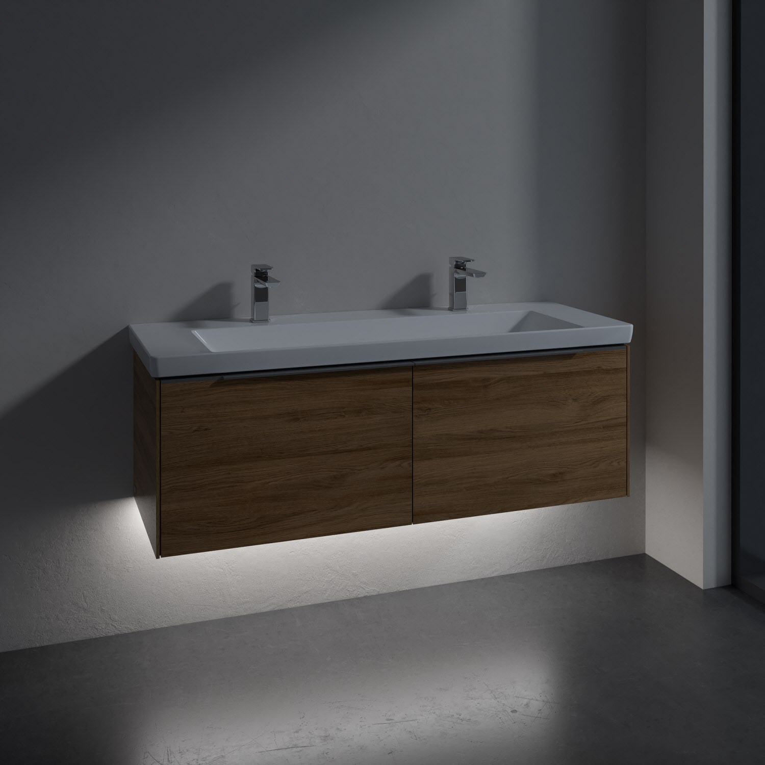 Villeroy & Boch Subway 3.0 Badmöbel-Set 130 cm mit Beleuchtung, 2 Auszüge, WT für 2 Armaturen