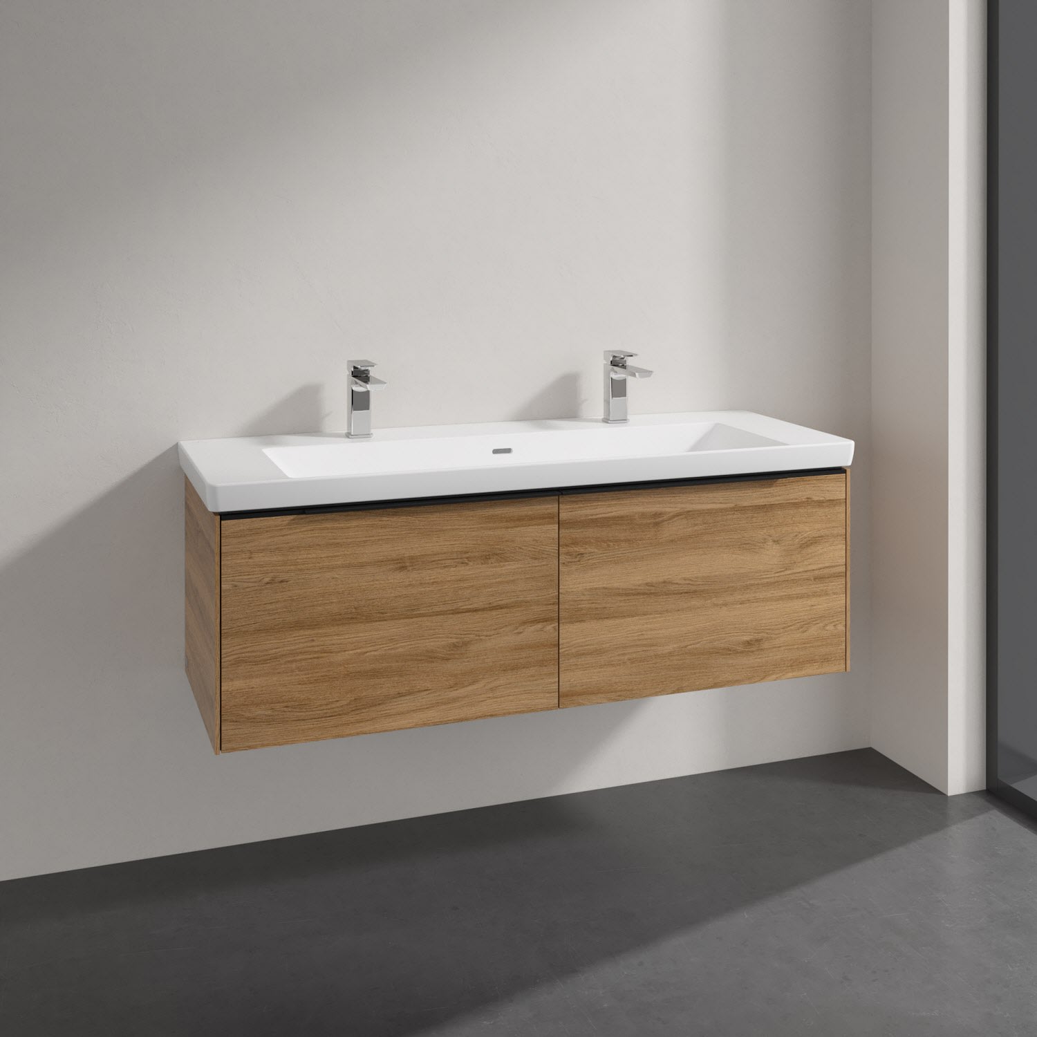 Villeroy & Boch Subway 3.0 Badmöbel-Set 130 cm, Griff volcano black, 2 Auszüge, WT für 2 Armaturen