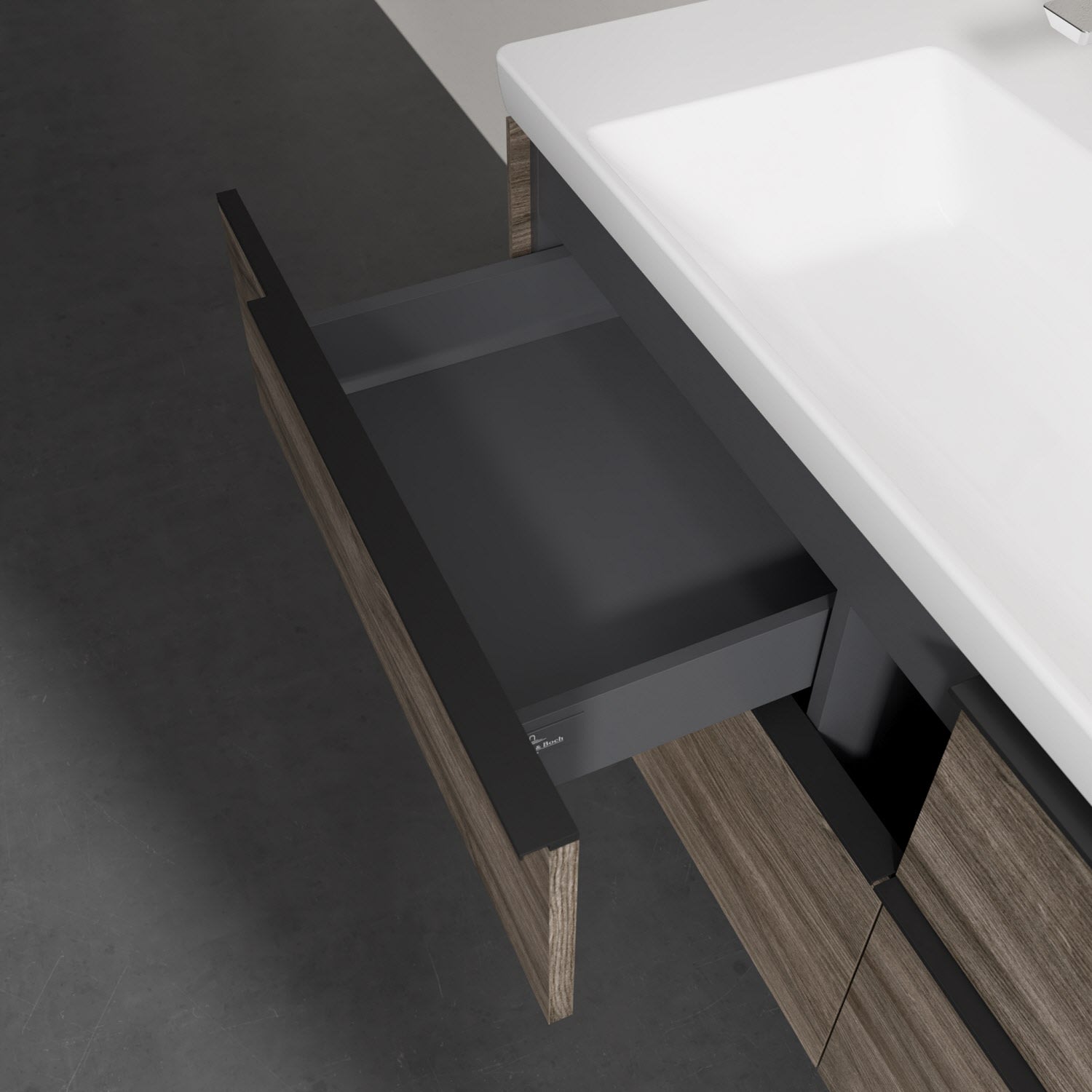 Villeroy & Boch Subway 3.0 Badmöbel-Set 130 cm, Griff volcano black, 4 Auszüge, WT für 2 Armaturen