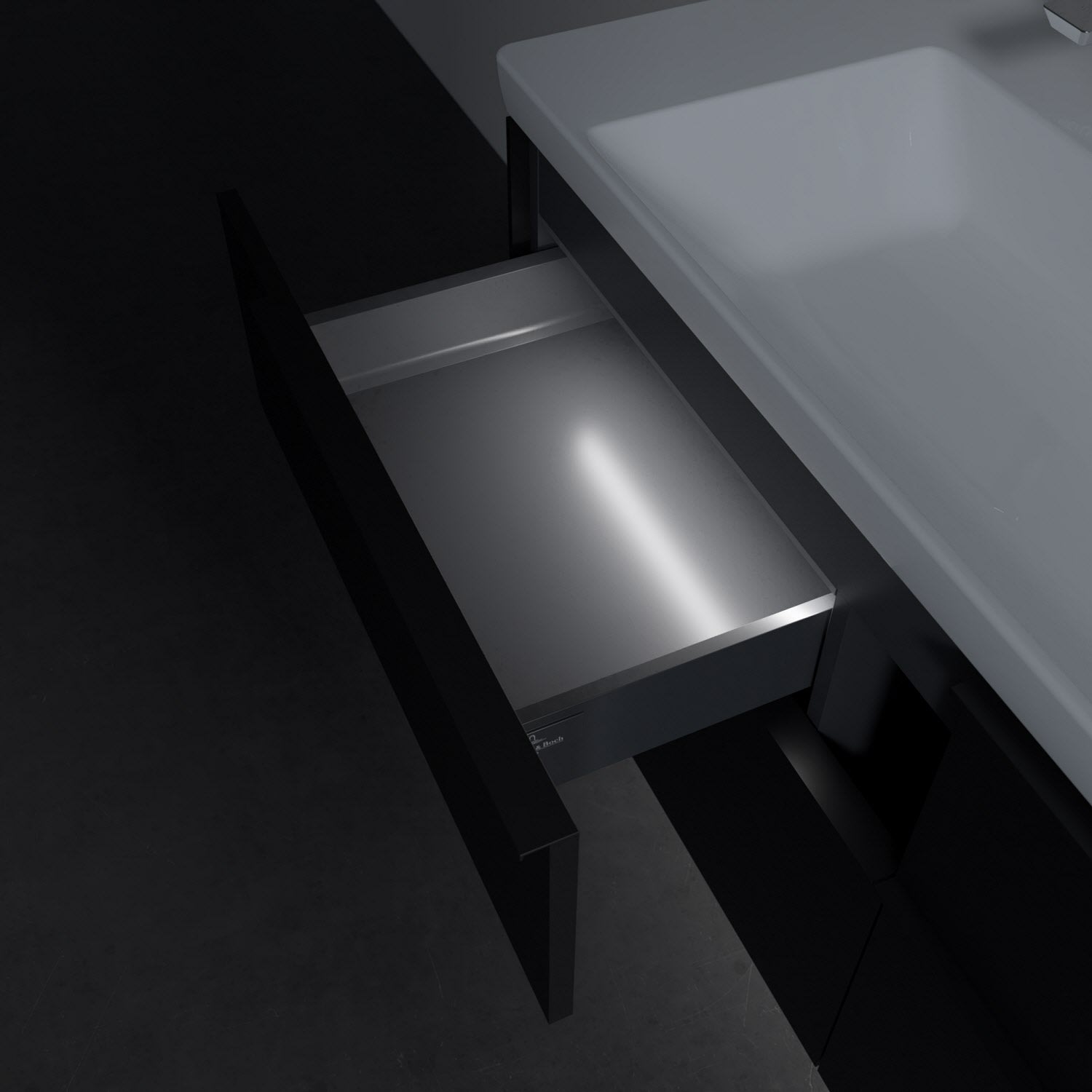 Villeroy & Boch Subway 3.0 Badmöbel-Set 130 cm mit Beleuchtung, Griff volcano black, 4 Auszüge, WT für 2 Armaturen