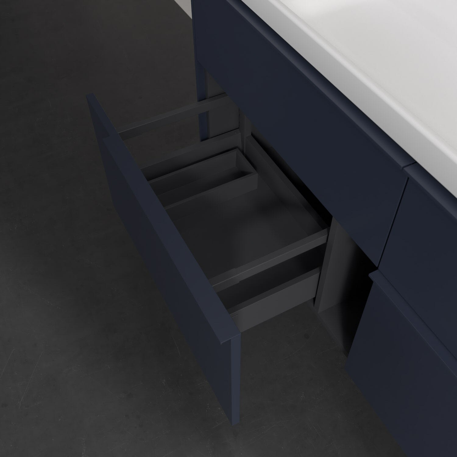 - kein Umfallen oder Verrutschen von Pflegeprodukten in den Schubladen dank rutschhemmendem Boden