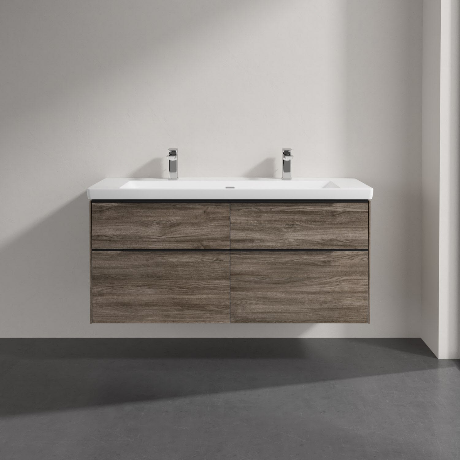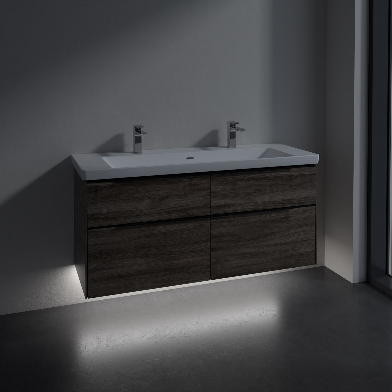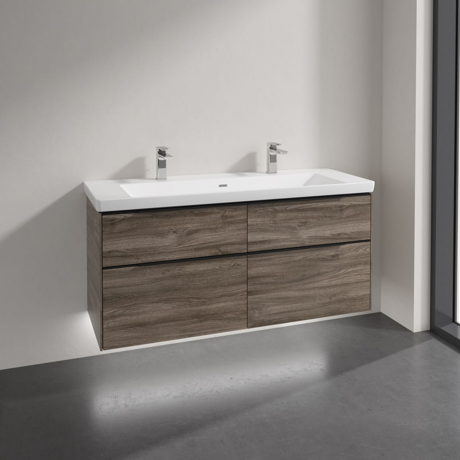 Villeroy & Boch Subway 3.0 Badmöbel-Set 130 cm mit Beleuchtung, Griff volcano black, 4 Auszüge, WT für 2 Armaturen