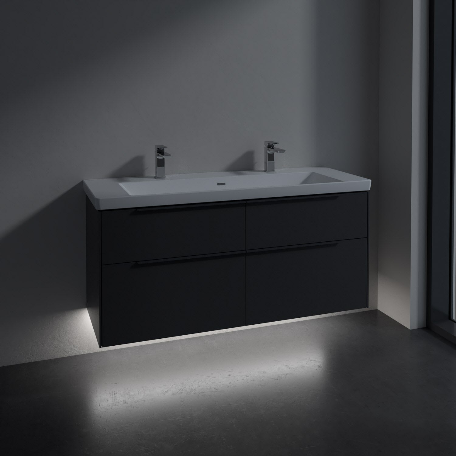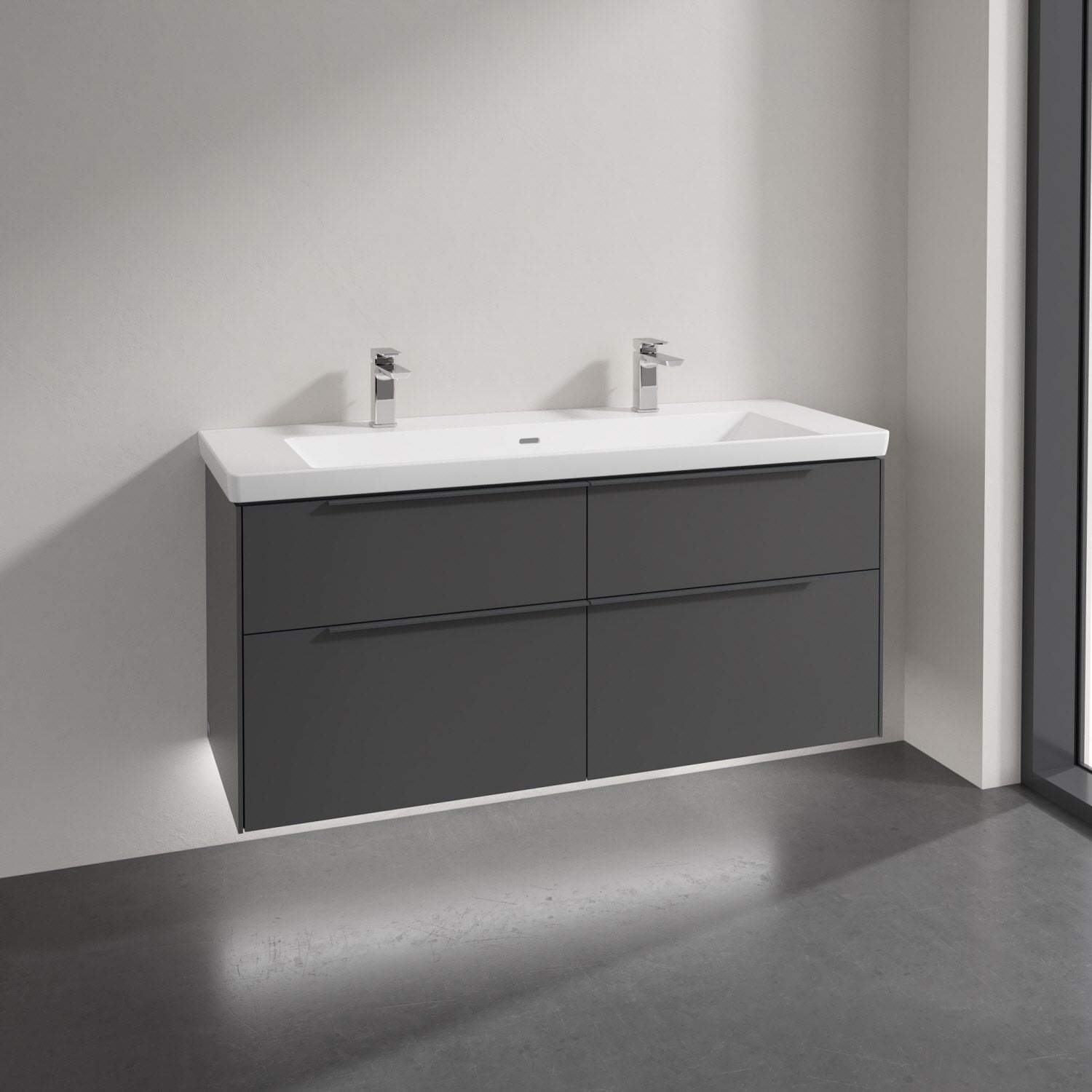 Villeroy & Boch Subway 3.0 Badmöbel-Set 130 cm mit Beleuchtung, Griff in Möbelfarbe, 4 Auszüge, WT für 2 Armaturen