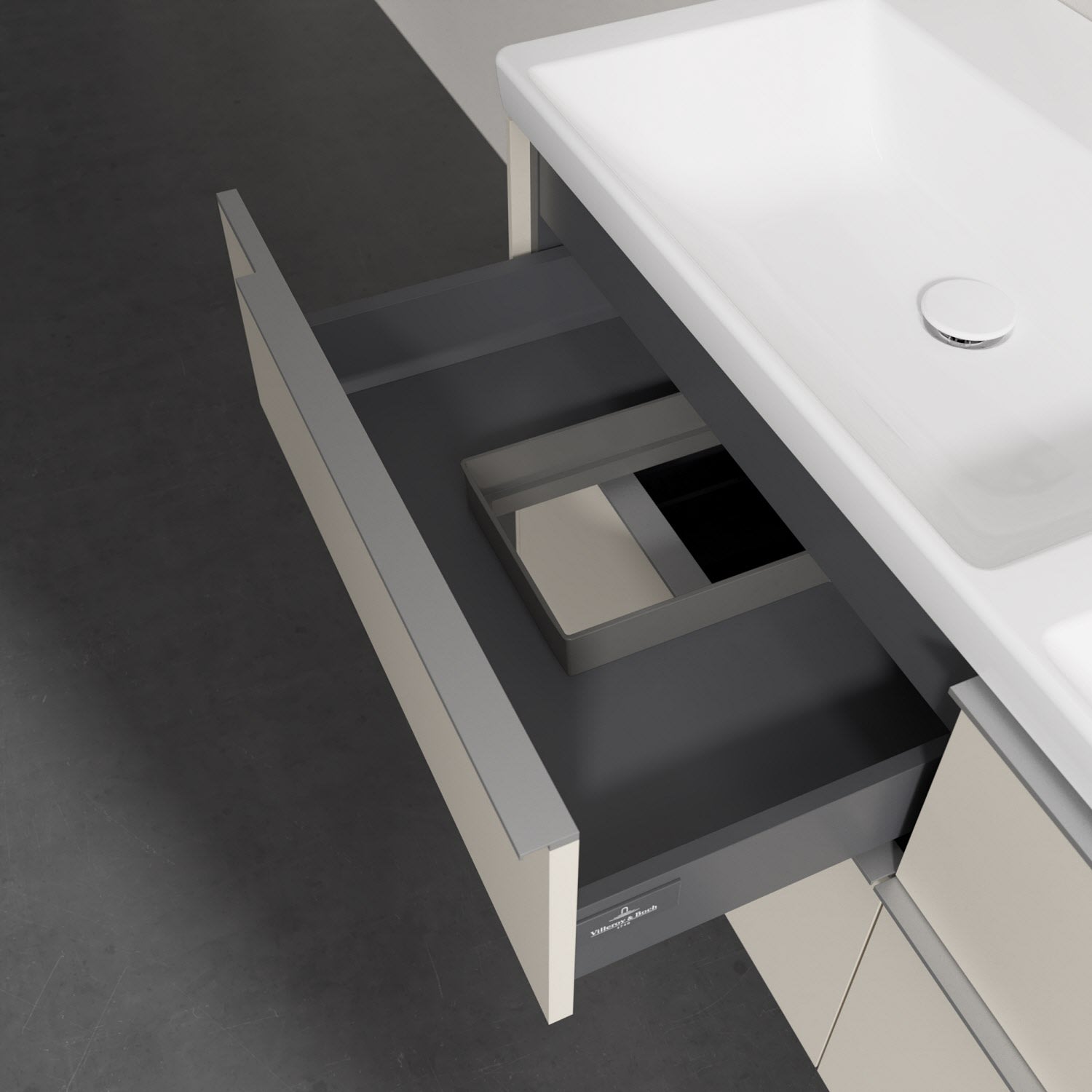 - kein Umfallen oder Verrutschen von Pflegeprodukten in den Schubladen dank rutschhemmendem Boden