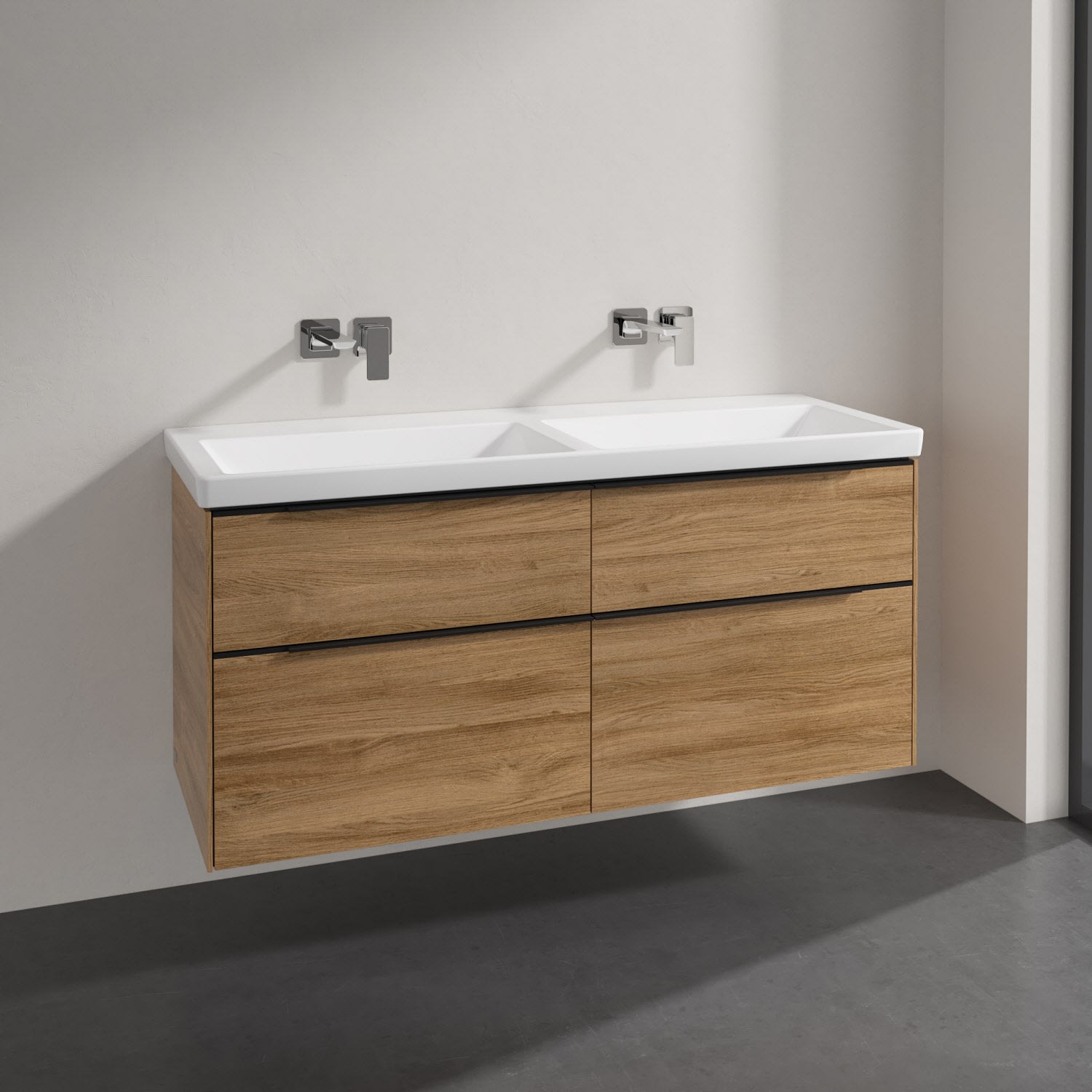 Villeroy & Boch Subway 3.0 Badmöbel-Set 130 cm, Griff volcano black, 4 Auszüge, Doppelwaschtisch