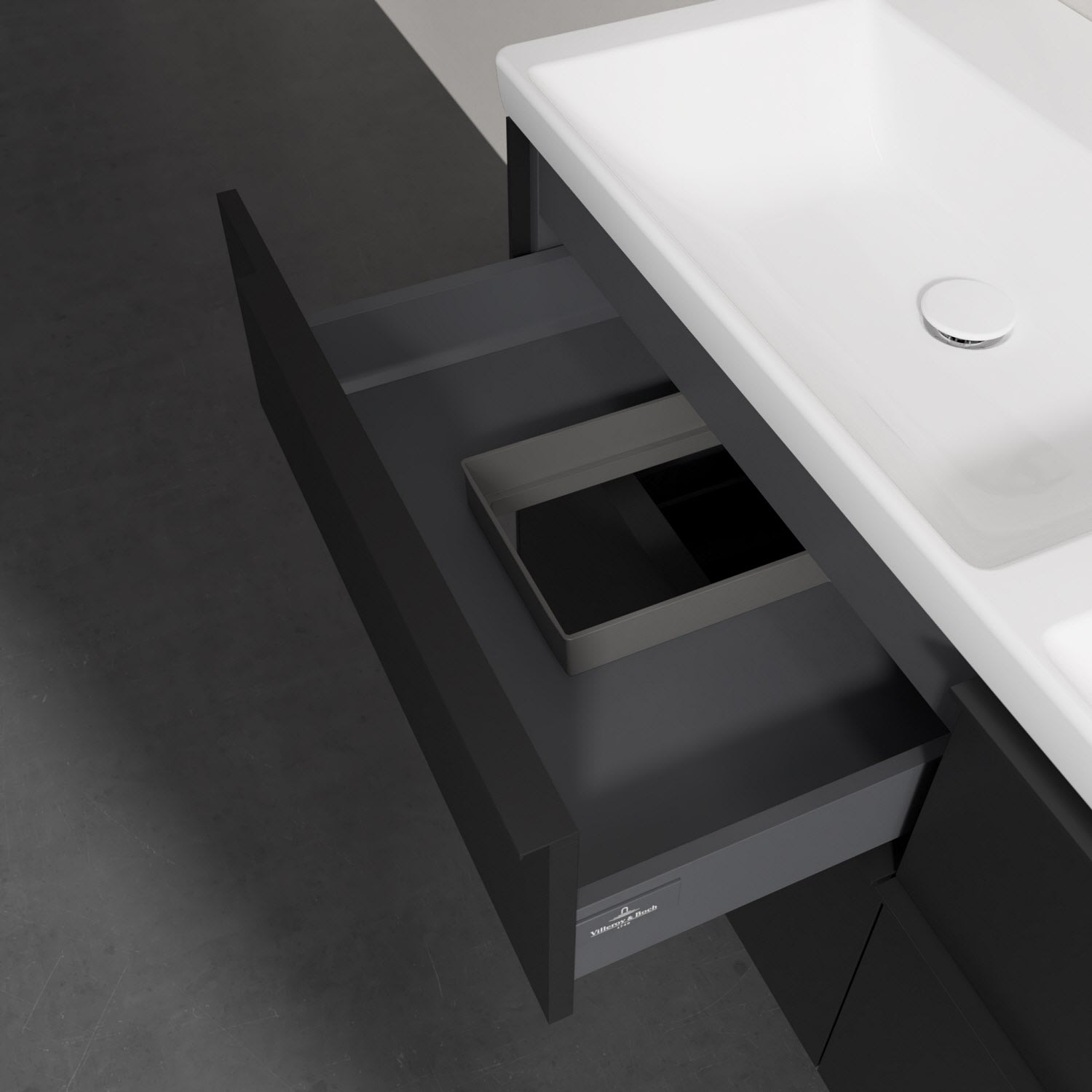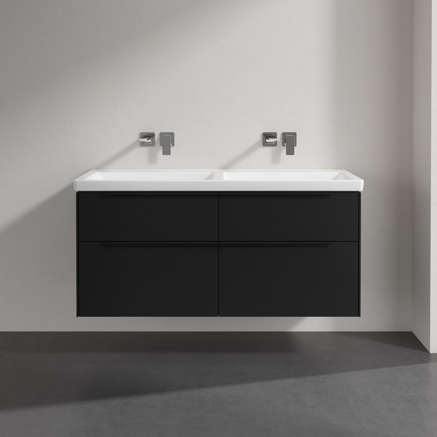 Villeroy & Boch Subway 3.0 Badmöbel-Set 130 cm, Griff volcano black, 4 Auszüge, Doppelwaschtisch