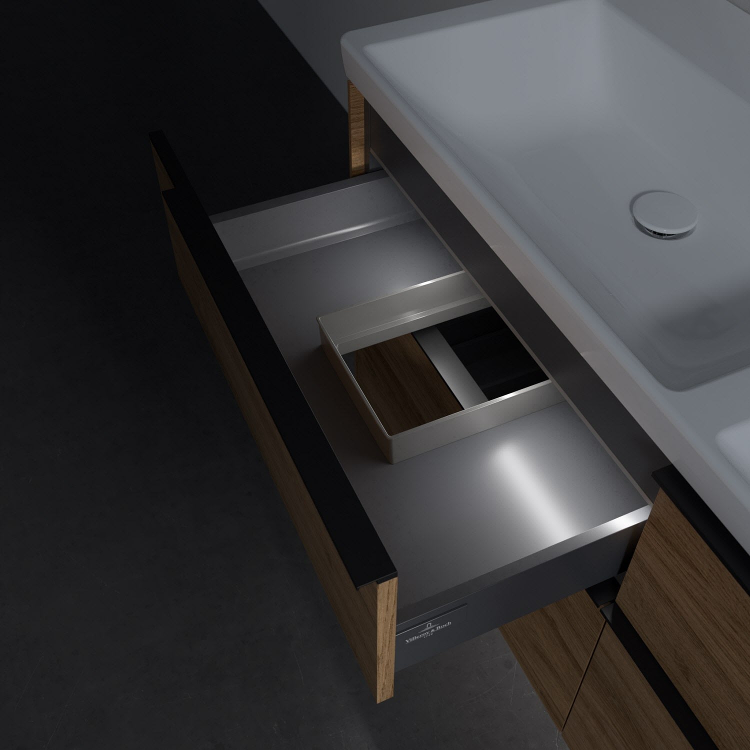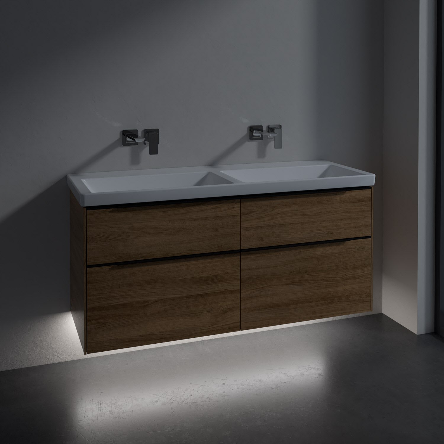 Villeroy & Boch Subway 3.0 Badmöbel-Set 130 cm mit Beleuchtung, Griff volcano black, 4 Auszüge, Doppelwaschtisch