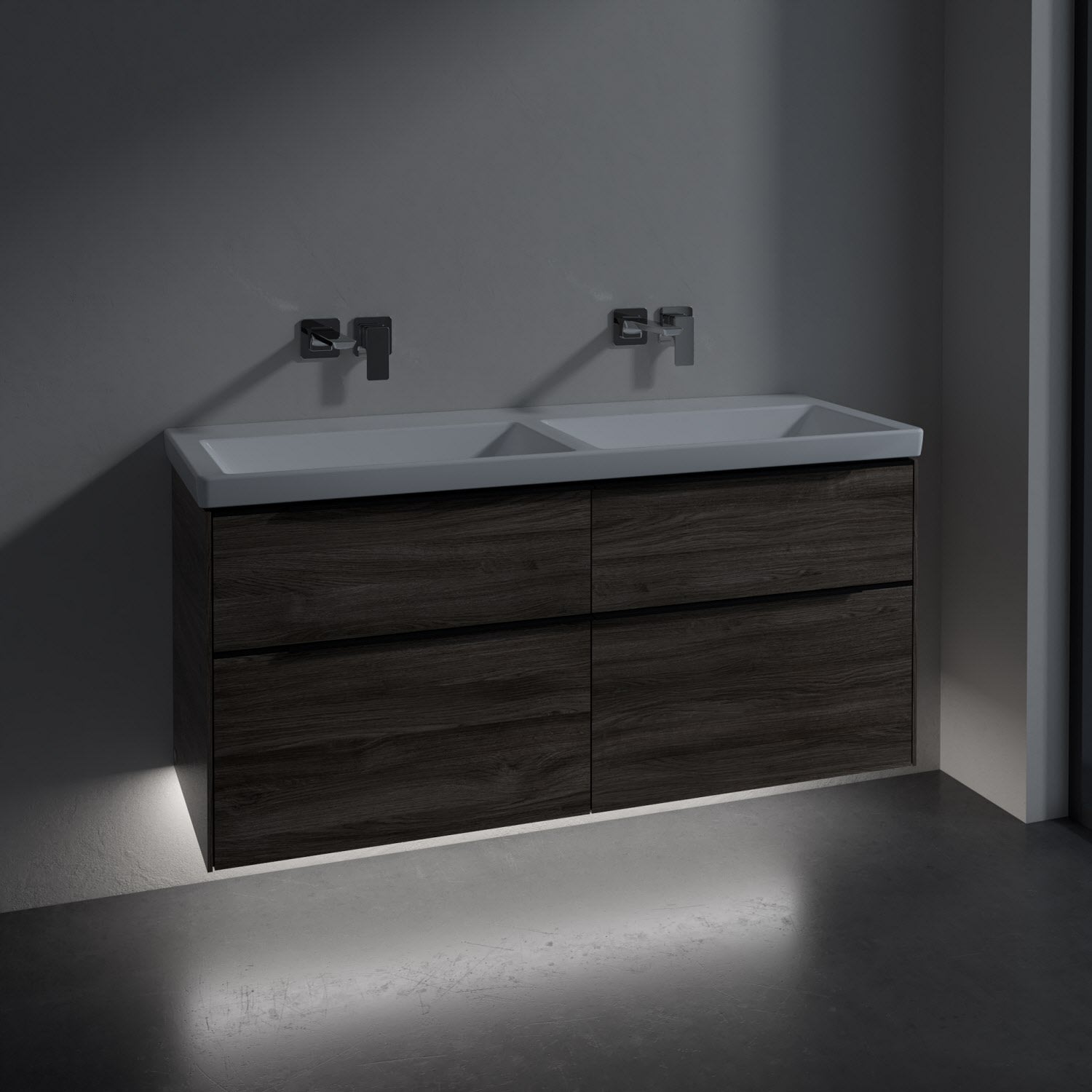 Villeroy & Boch Subway 3.0 Badmöbel-Set 130 cm mit Beleuchtung, Griff volcano black, 4 Auszüge, Doppelwaschtisch