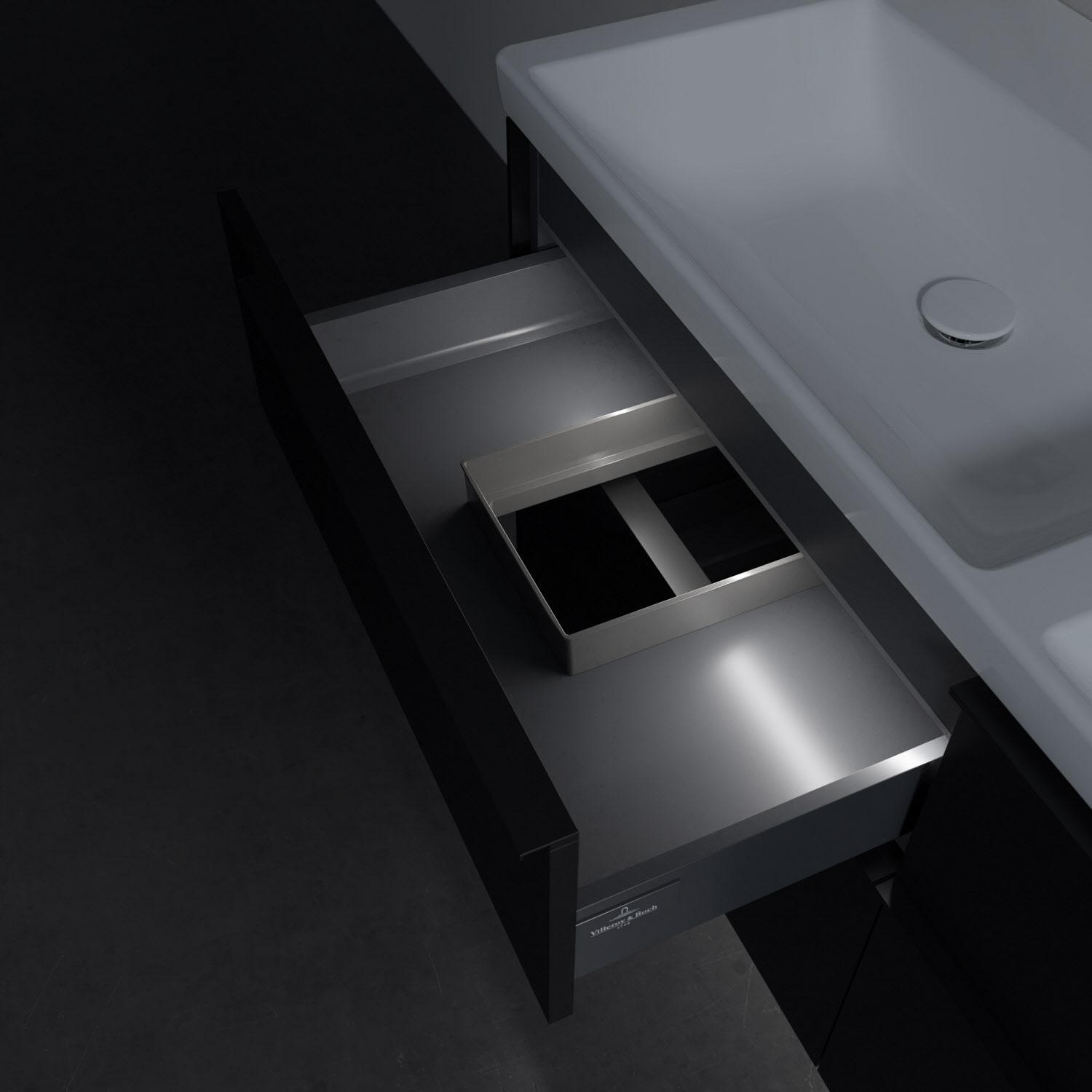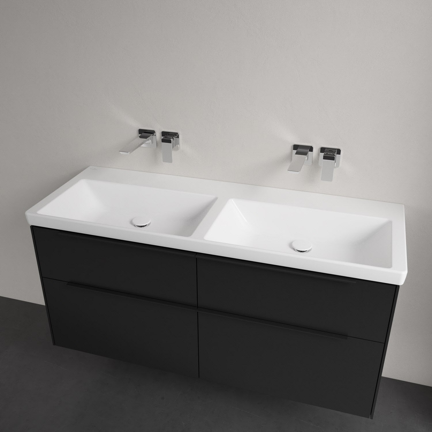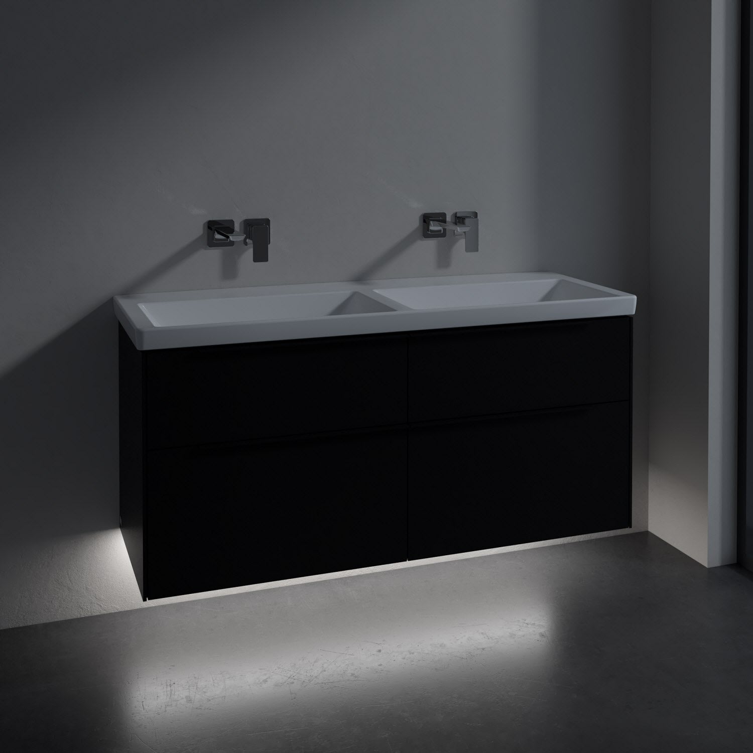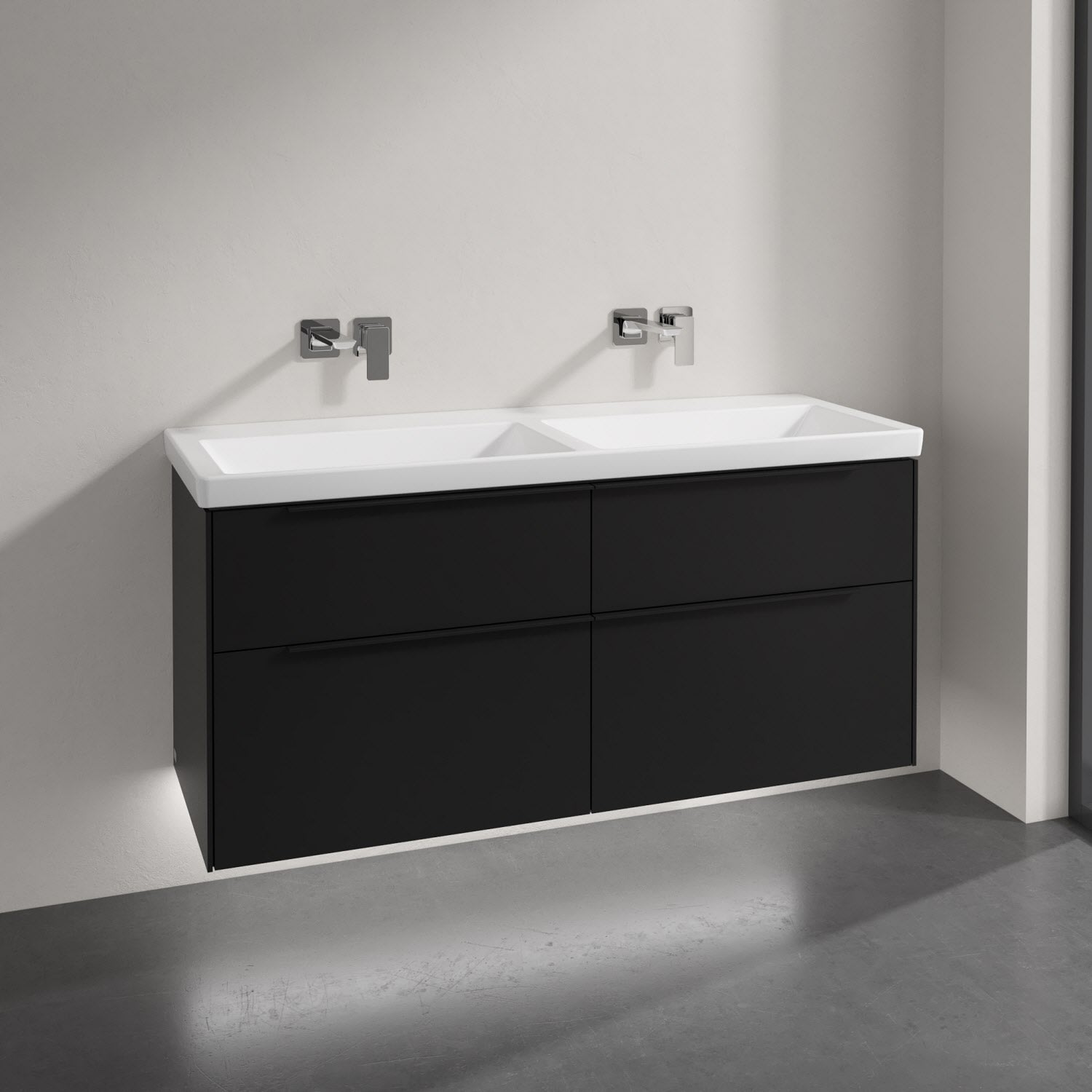 Villeroy & Boch Subway 3.0 Badmöbel-Set 130 cm mit Beleuchtung, Griff volcano black, 4 Auszüge, Doppelwaschtisch