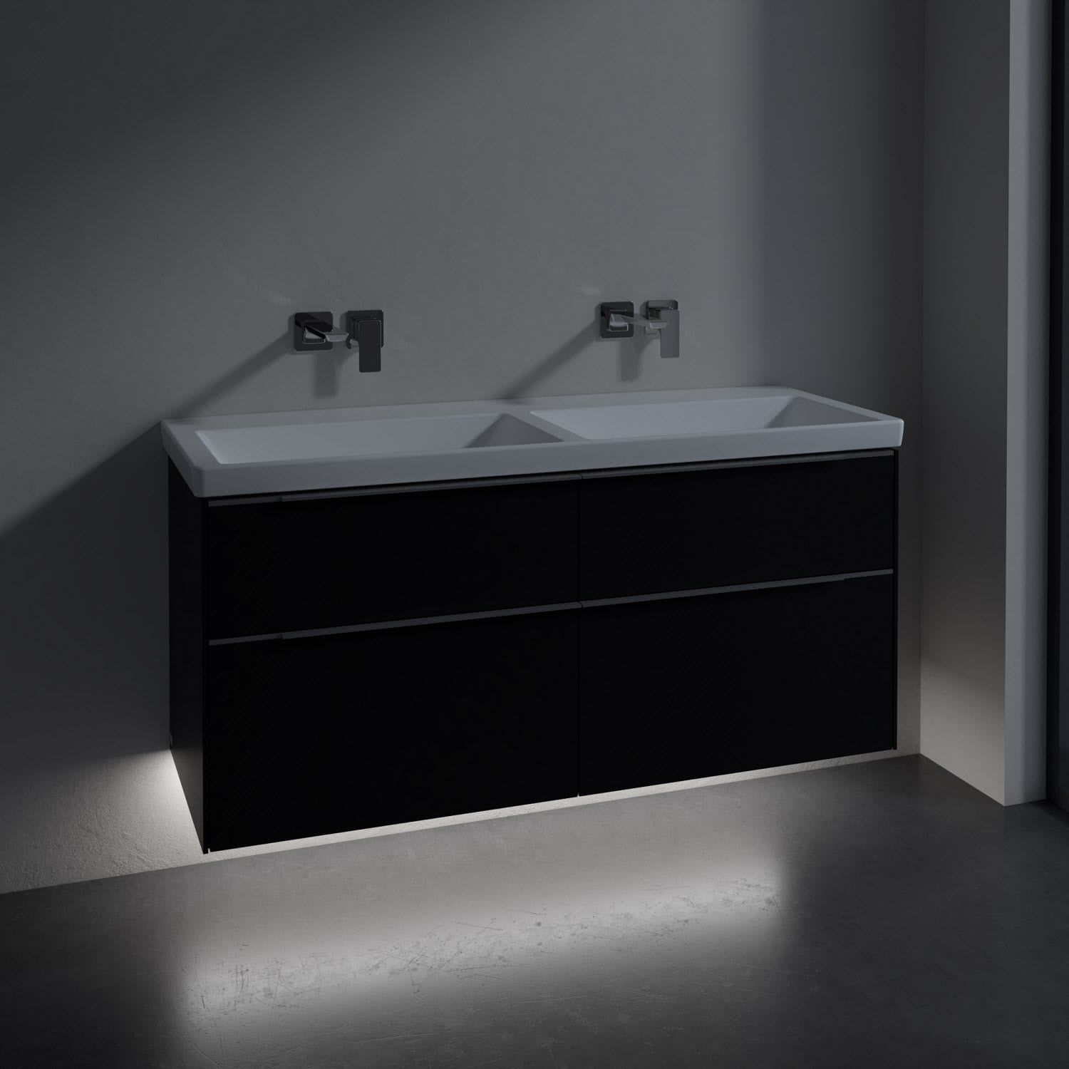 Villeroy & Boch Subway 3.0 Badmöbel-Set 130 cm mit Beleuchtung, 4 Auszüge, Doppelwaschtisch
