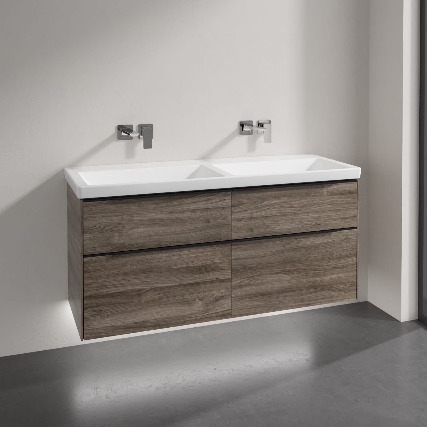 Villeroy & Boch Subway 3.0 Badmöbel-Set 130 cm mit Beleuchtung, Griff volcano black, 4 Auszüge, Doppelwaschtisch
