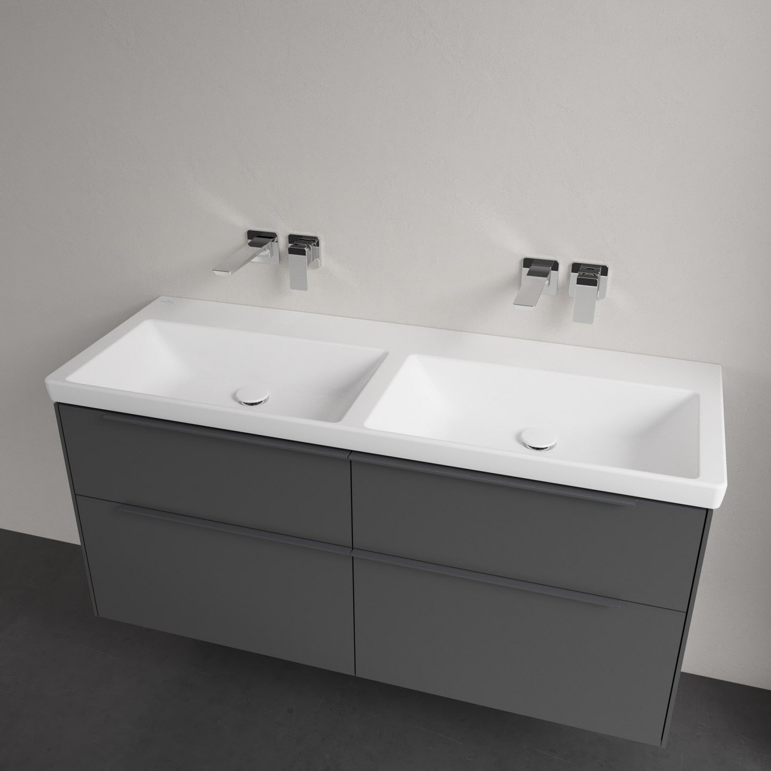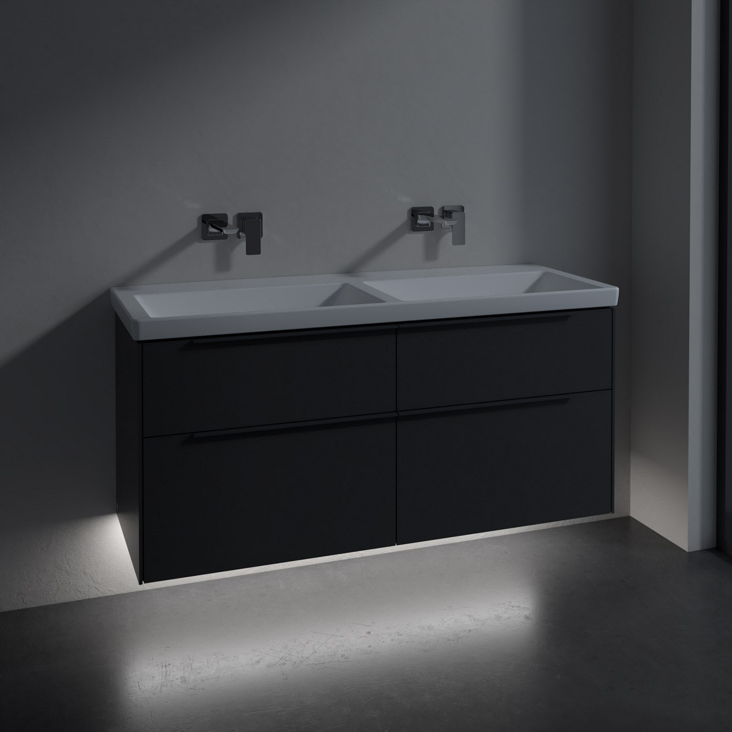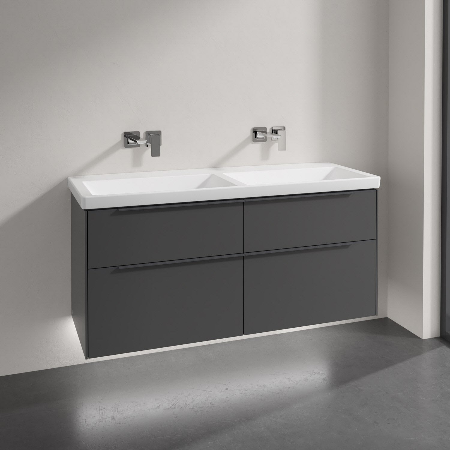 Villeroy & Boch Subway 3.0 Badmöbel-Set 130 cm mit Beleuchtung, Griff in Möbelfarbe, 4 Auszüge, Doppelwaschtisch