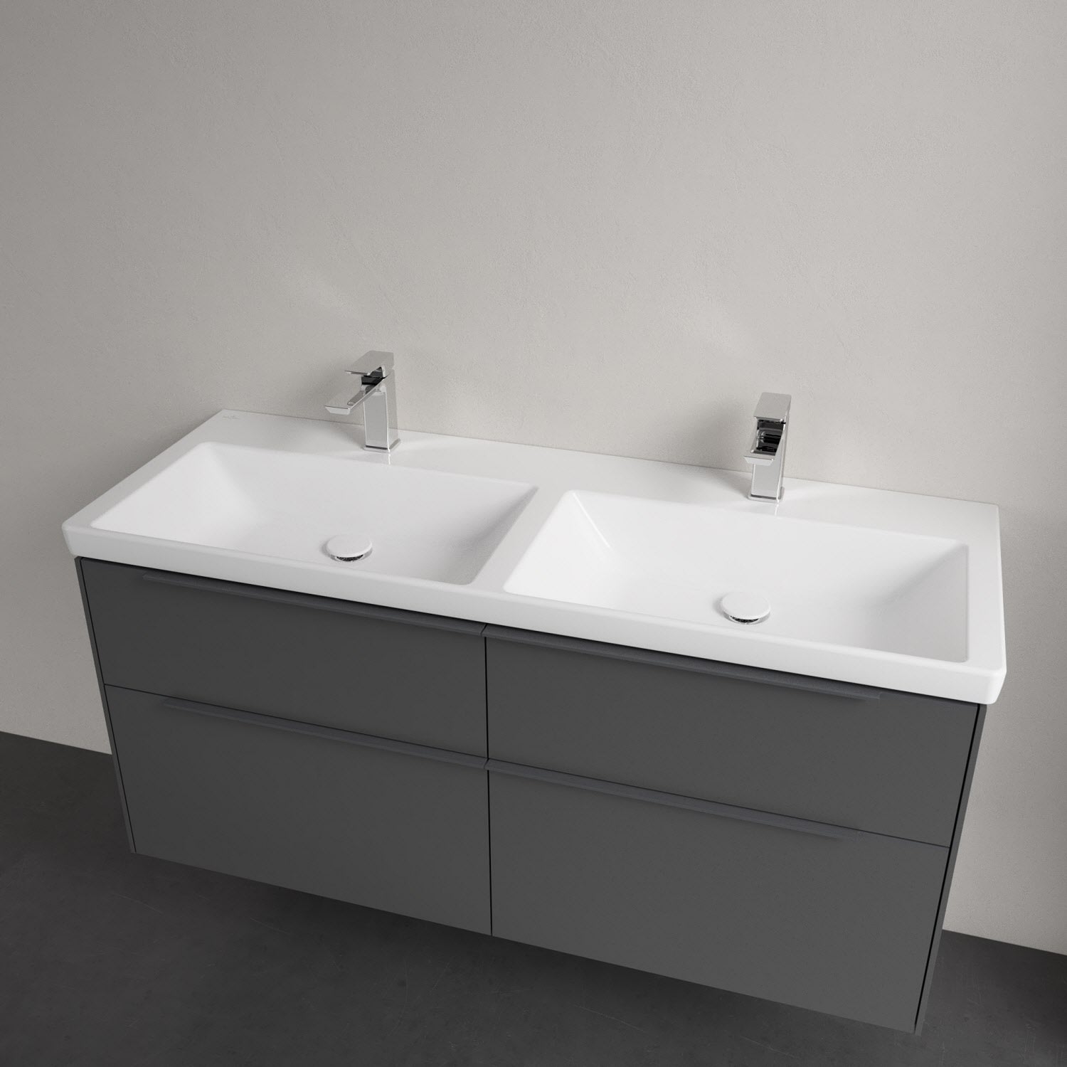 Villeroy & Boch Subway 3.0 Badmöbel-Set 130 cm, Griff in Möbelfarbe, 4 Auszüge, Doppelwaschtisch
