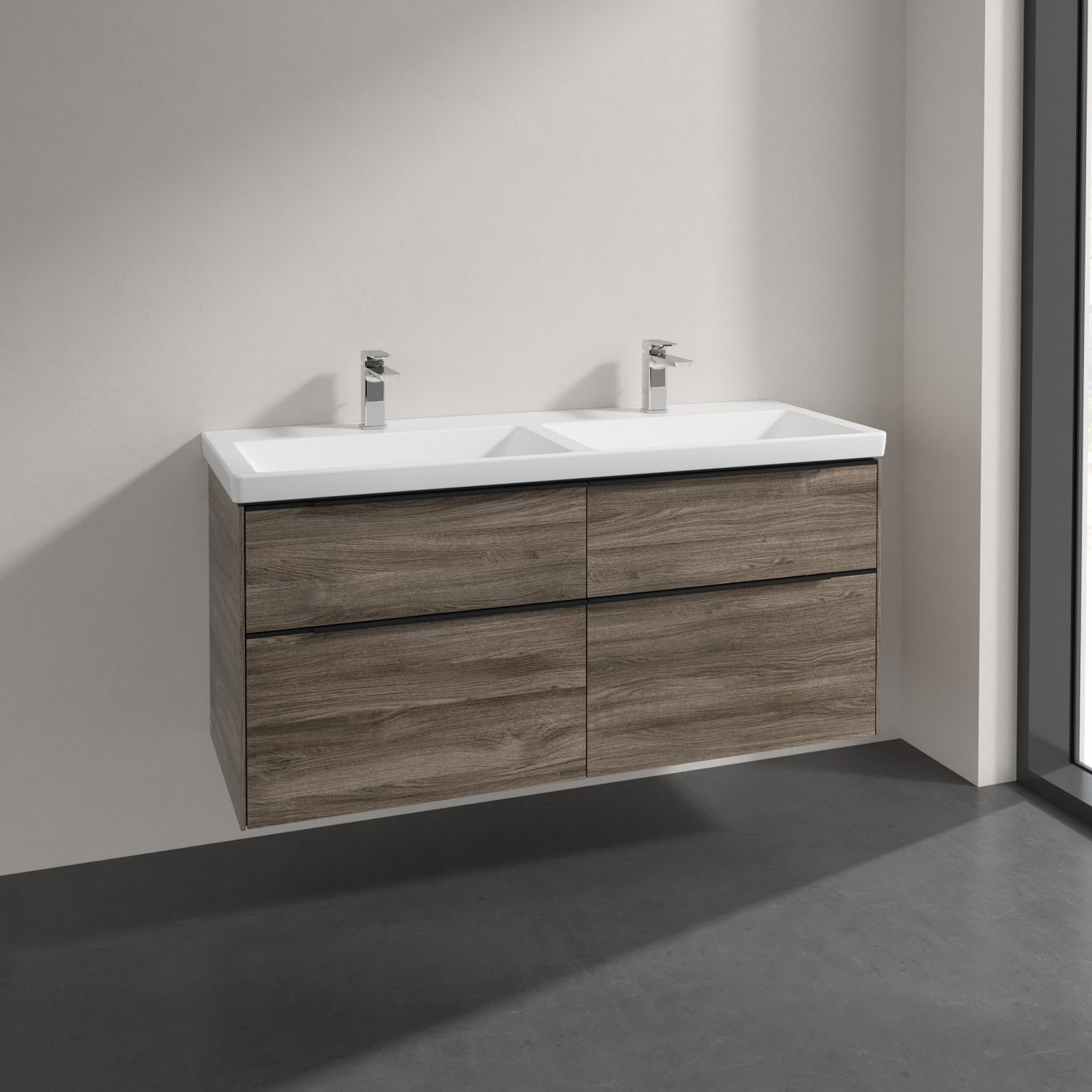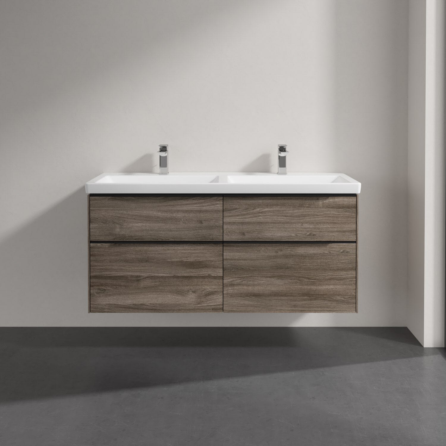 Villeroy & Boch Subway 3.0 Badmöbel-Set 130 cm, Griff volcano black, 4 Auszüge, Doppelwaschtisch