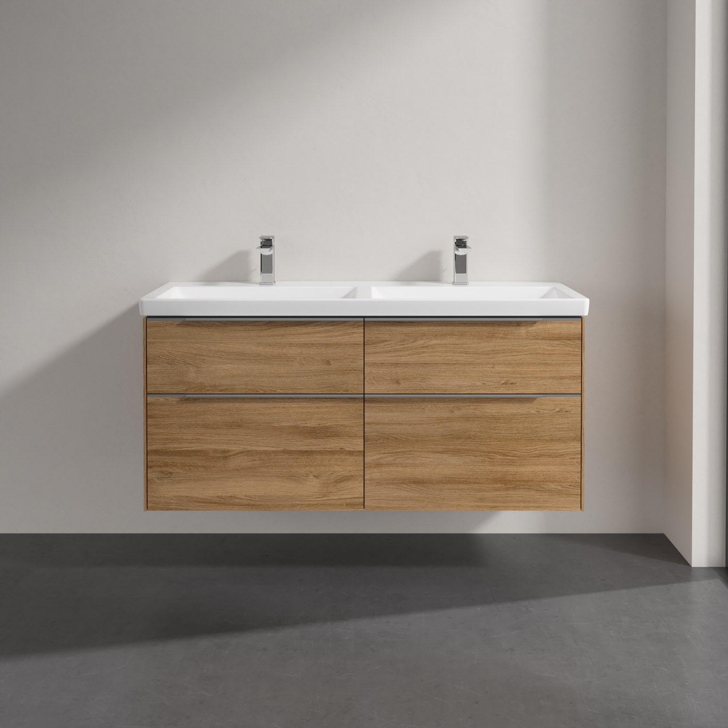 Villeroy & Boch Subway 3.0 Badmöbel-Set 130 cm mit Beleuchtung, 4 Auszüge, Doppelwaschtisch