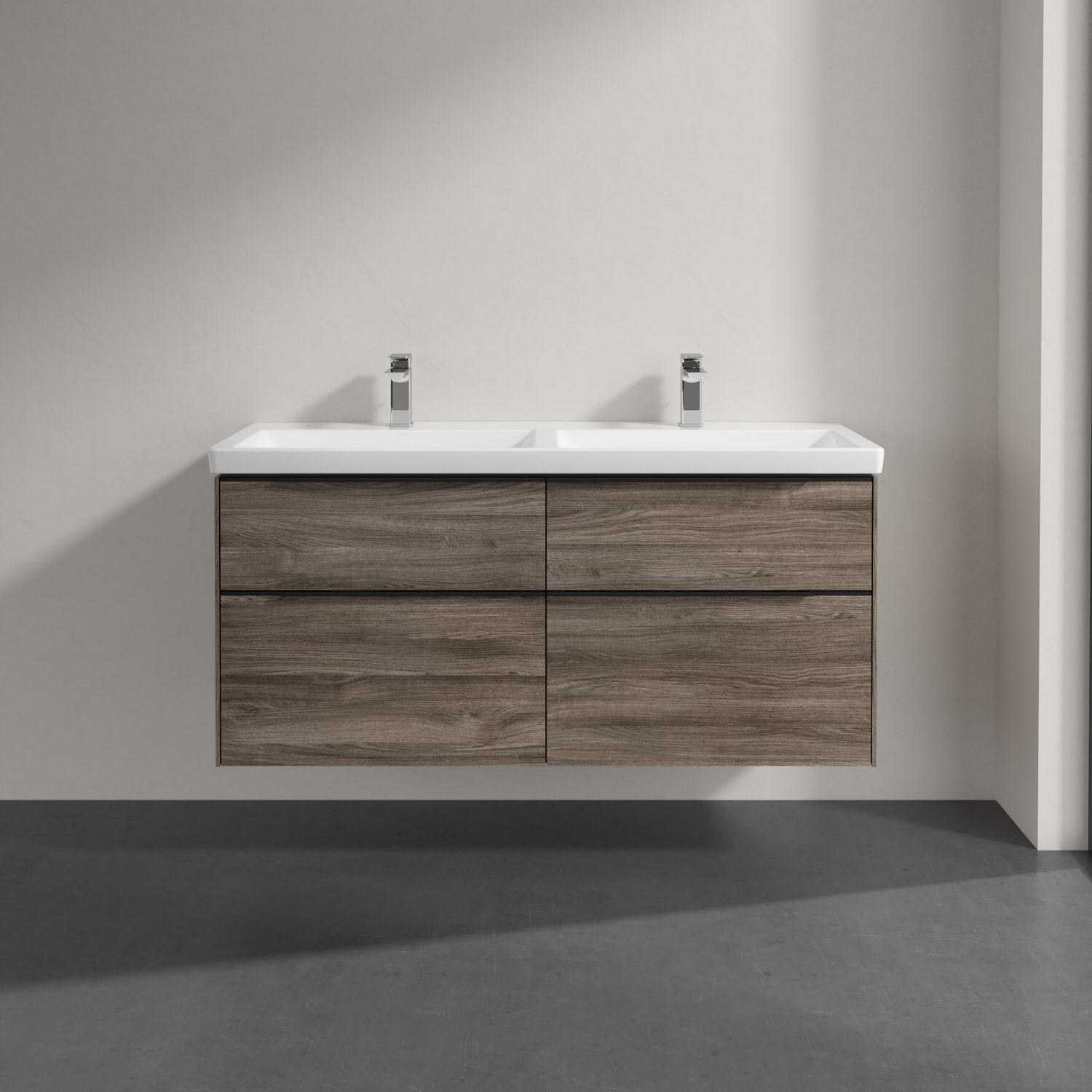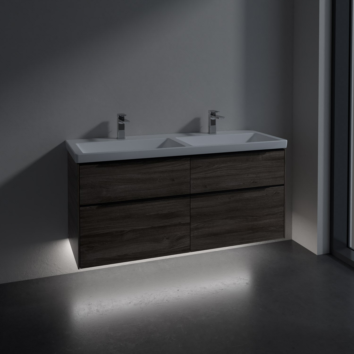 Villeroy & Boch Subway 3.0 Badmöbel-Set 130 cm mit Beleuchtung, Griff volcano black, 4 Auszüge, Doppelwaschtisch