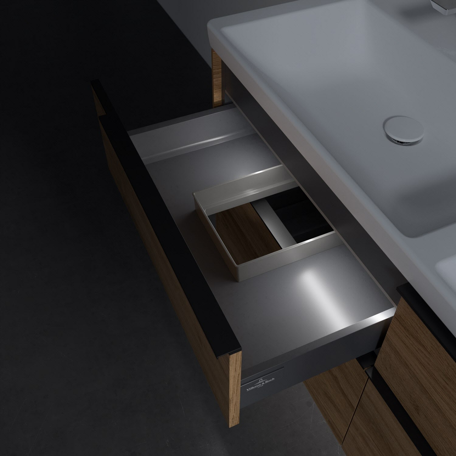 Villeroy & Boch Subway 3.0 Badmöbel-Set 130 cm mit Beleuchtung, Griff volcano black, 4 Auszüge, Doppelwaschtisch