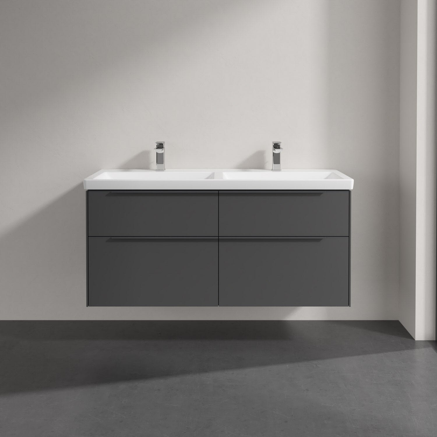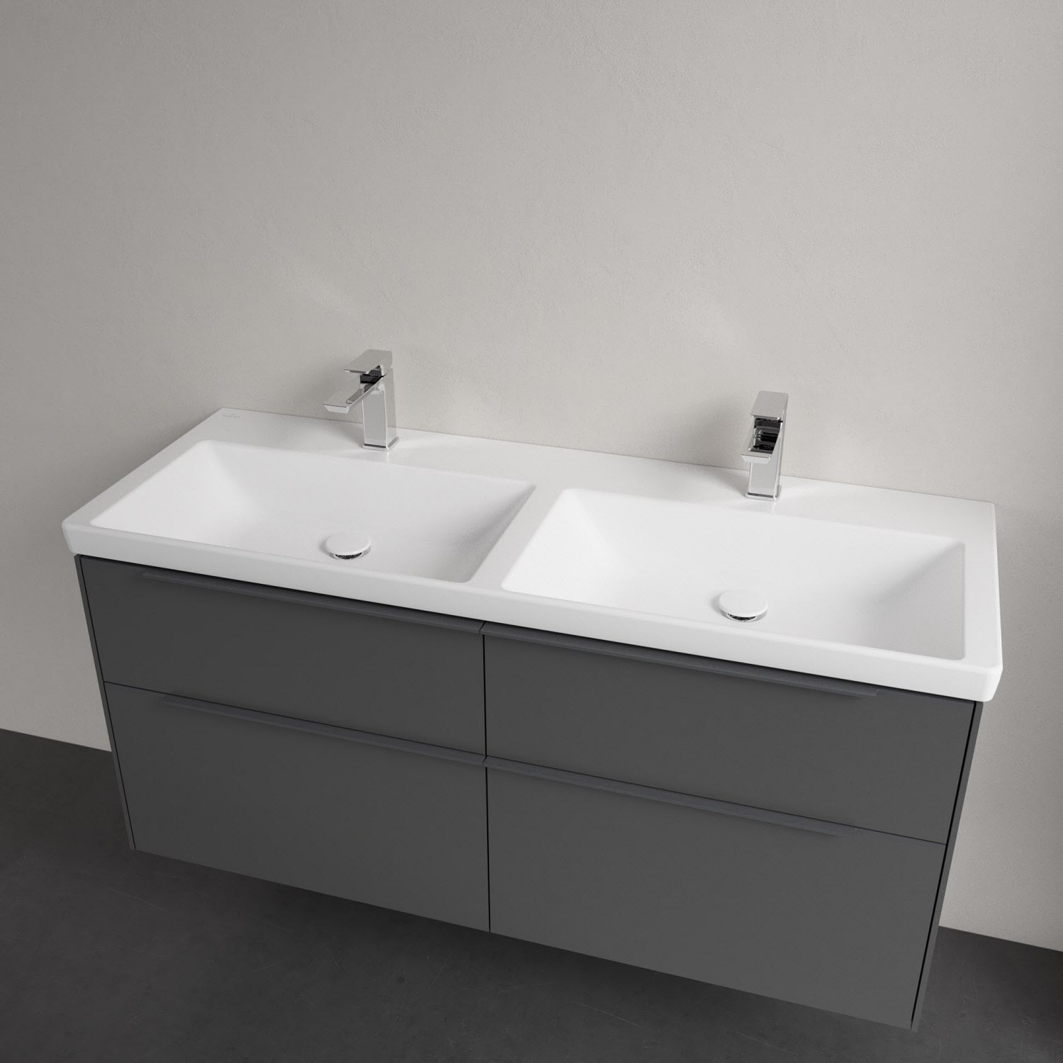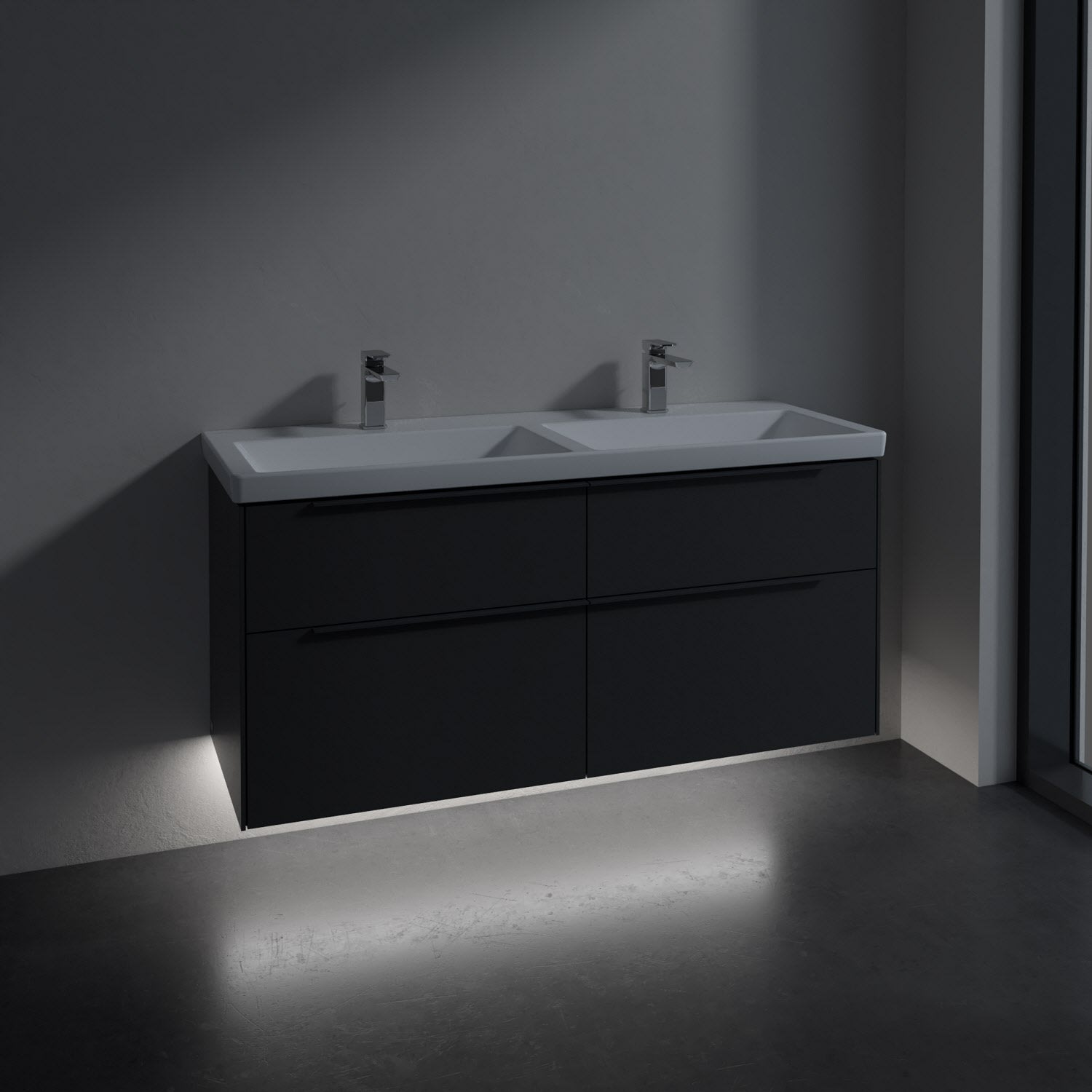 Villeroy & Boch Subway 3.0 Badmöbel-Set 130 cm mit Beleuchtung, Griff in Möbelfarbe, 4 Auszüge, Doppelwaschtisch