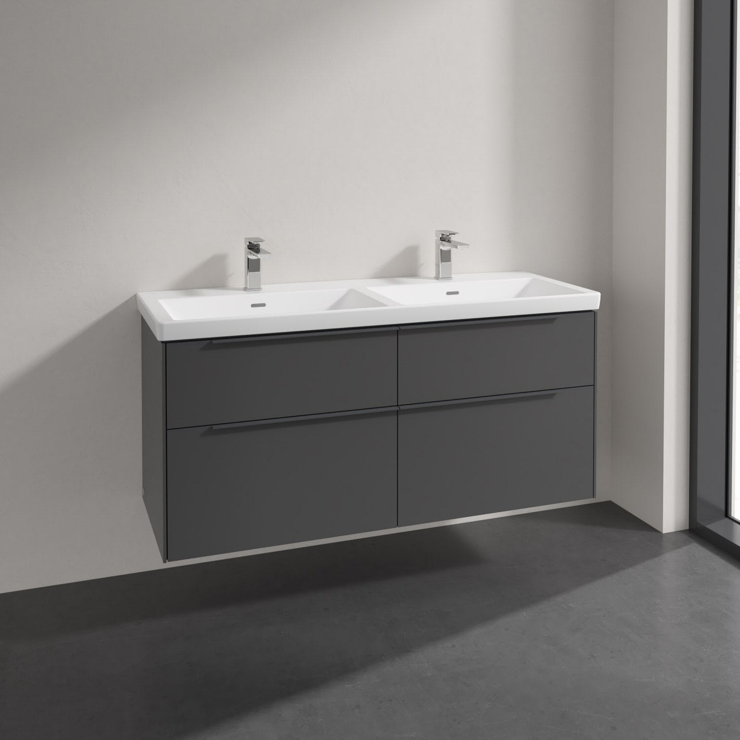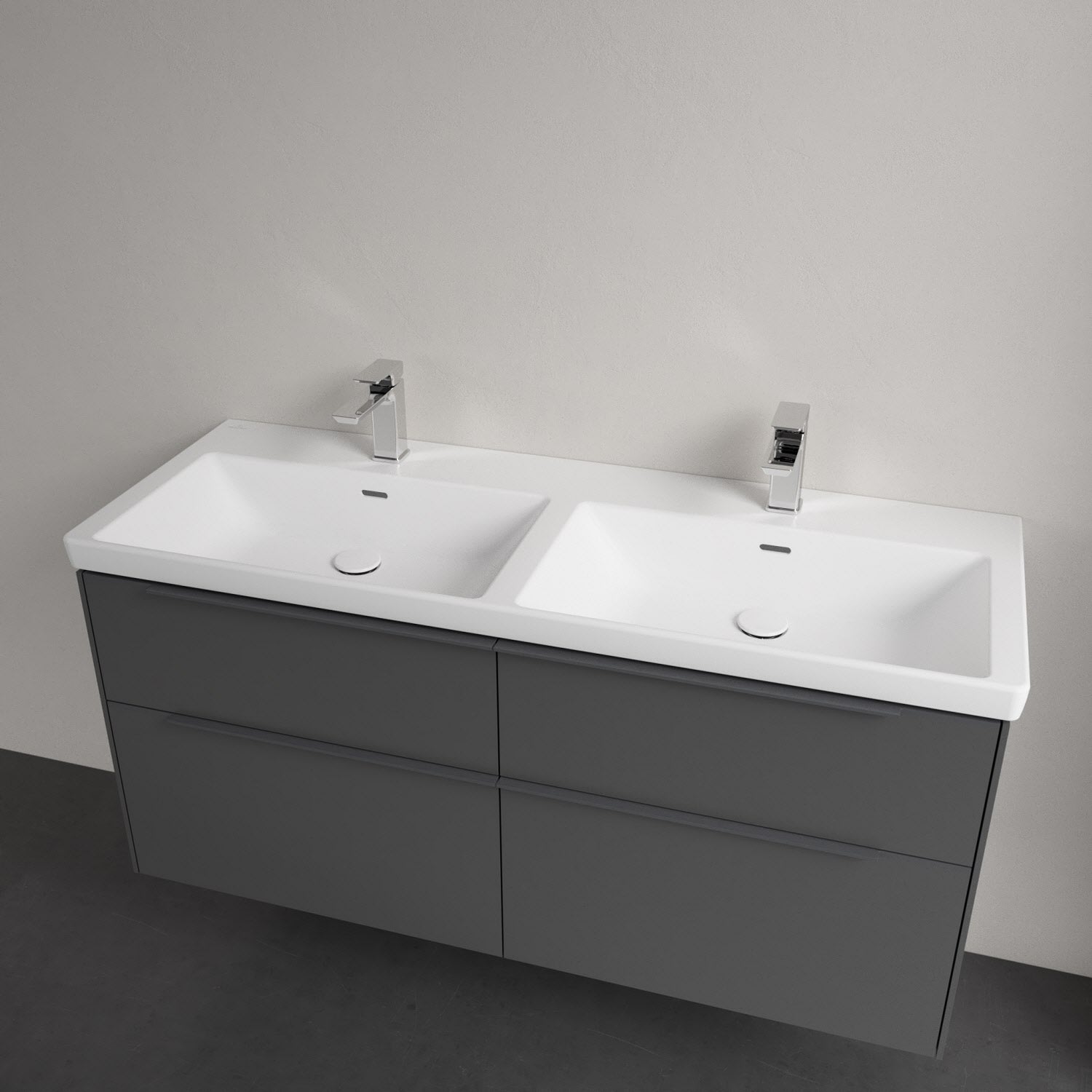 Villeroy & Boch Subway 3.0 Badmöbel-Set 130 cm, Griff in Möbelfarbe, 4 Auszüge, Doppelwaschtisch