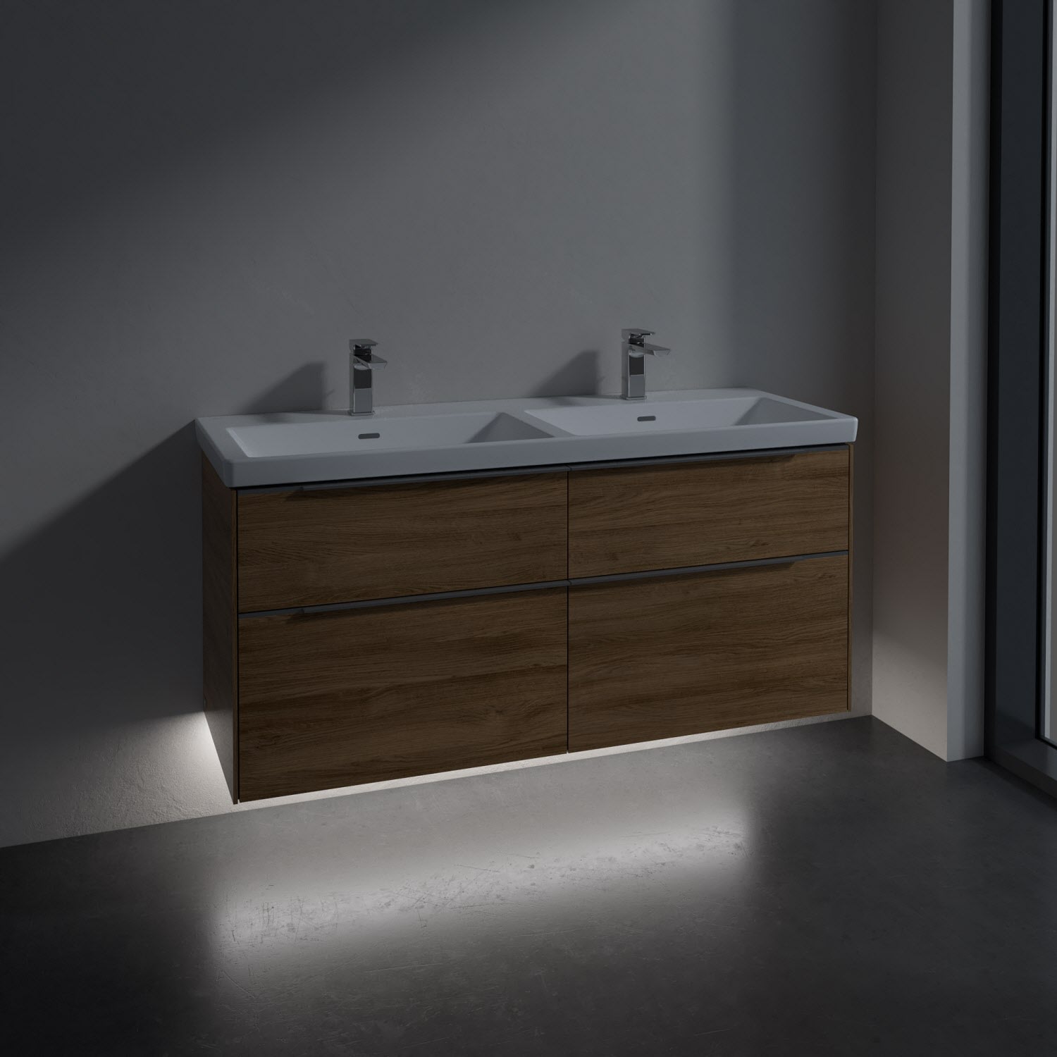 Villeroy & Boch Subway 3.0 Badmöbel-Set 130 cm mit Beleuchtung, 4 Auszüge, Doppelwaschtisch