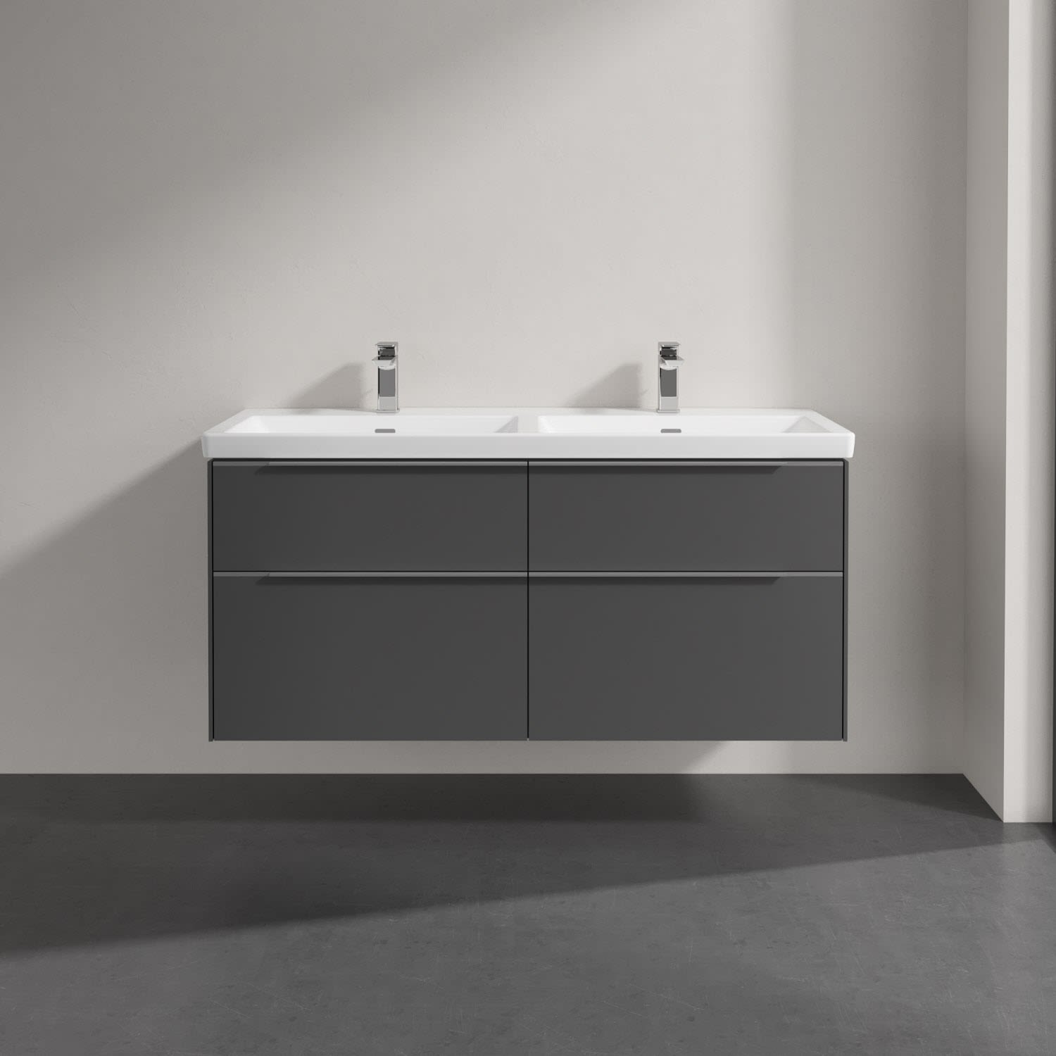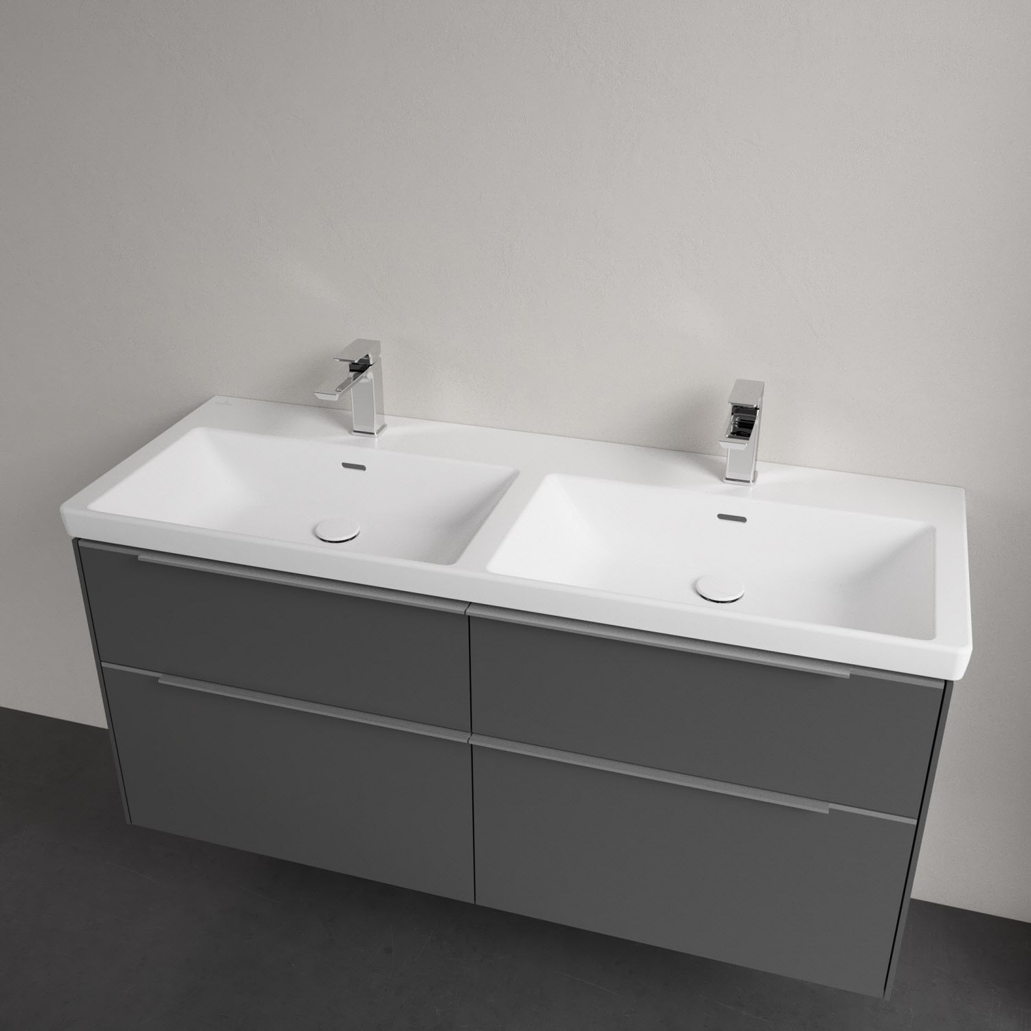Villeroy & Boch Subway 3.0 Badmöbel-Set 130 cm mit Beleuchtung, 4 Auszüge, Doppelwaschtisch