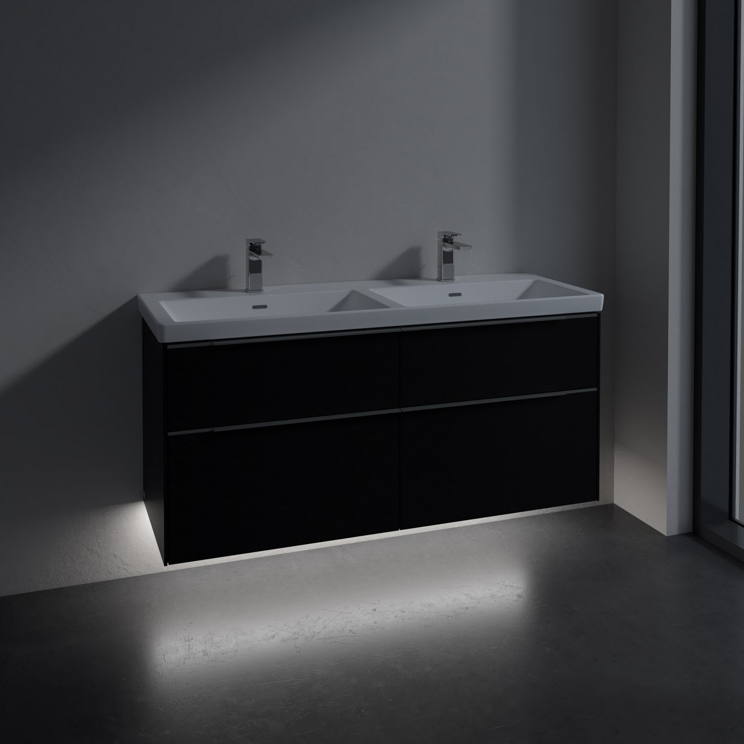 Villeroy & Boch Subway 3.0 Badmöbel-Set 130 cm mit Beleuchtung, 4 Auszüge, Doppelwaschtisch