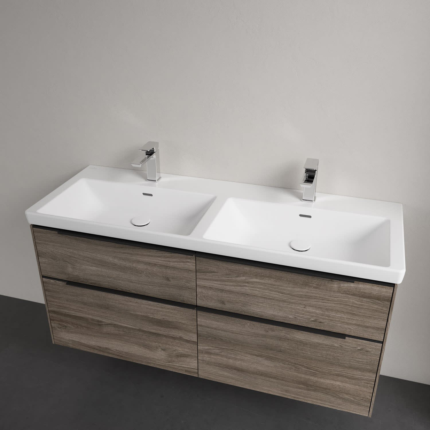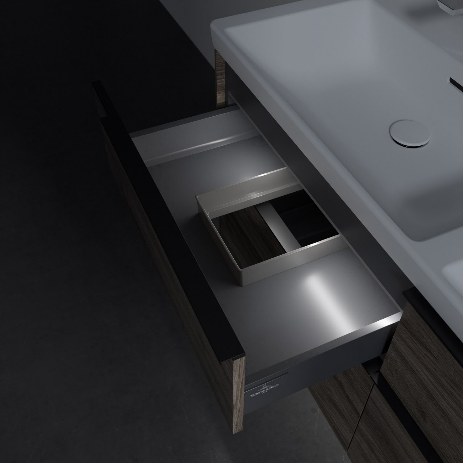 Villeroy & Boch Subway 3.0 Badmöbel-Set 130 cm mit Beleuchtung, Griff volcano black, 4 Auszüge, Doppelwaschtisch