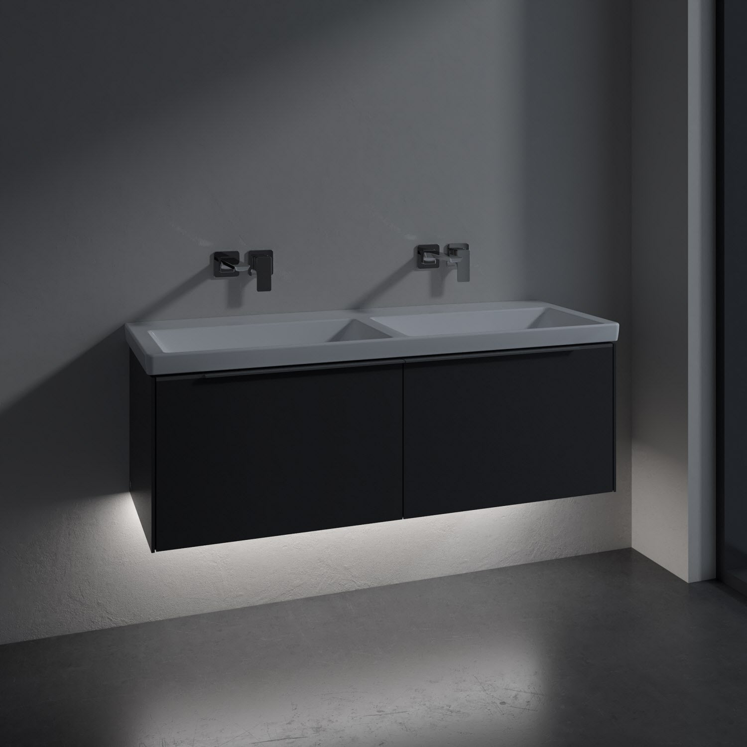 Villeroy & Boch Subway 3.0 Badmöbel-Set 130 cm mit Beleuchtung, 2 Auszüge, Doppelwaschtisch