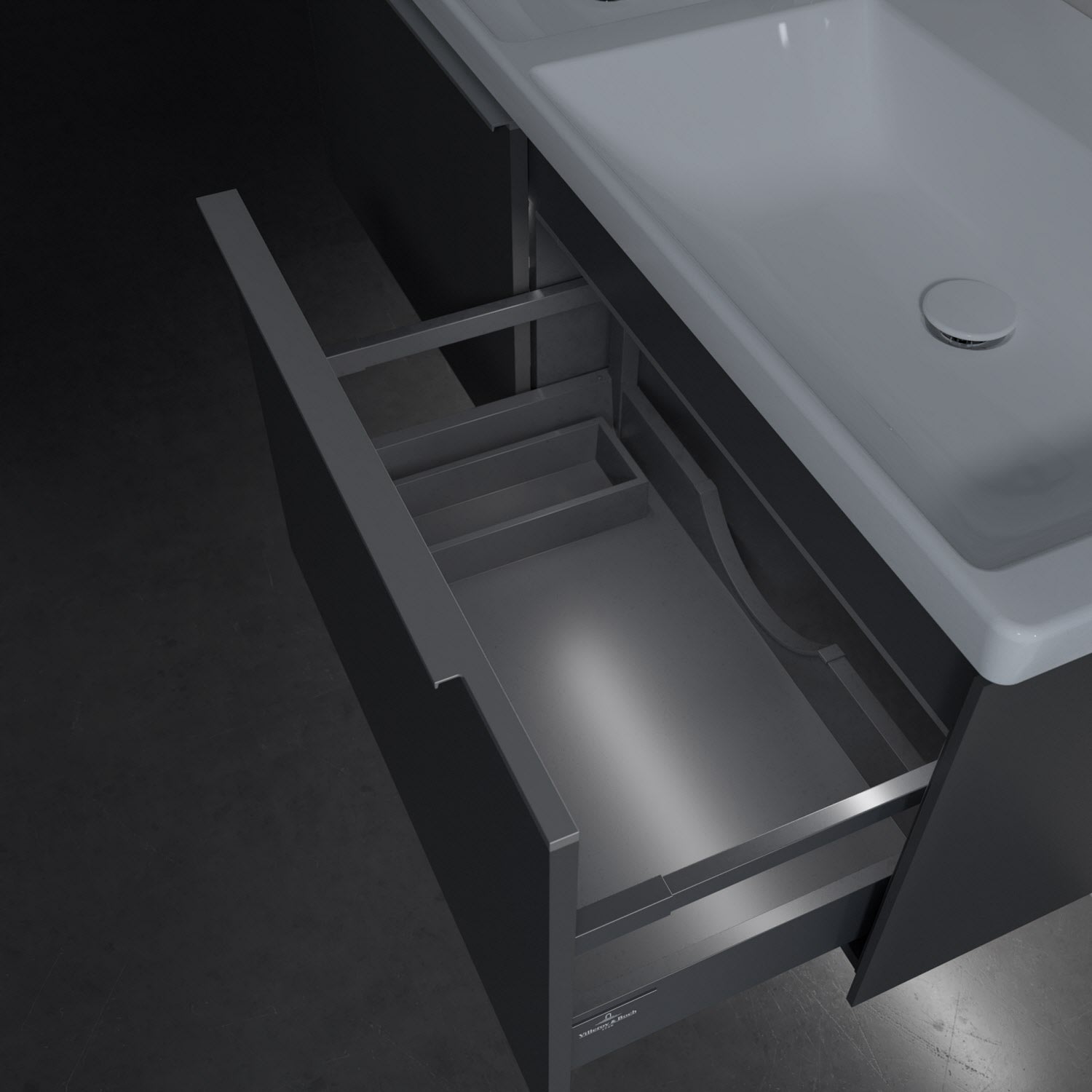 - kein Umfallen oder Verrutschen von Pflegeprodukten in den Schubladen dank rutschhemmendem Boden
