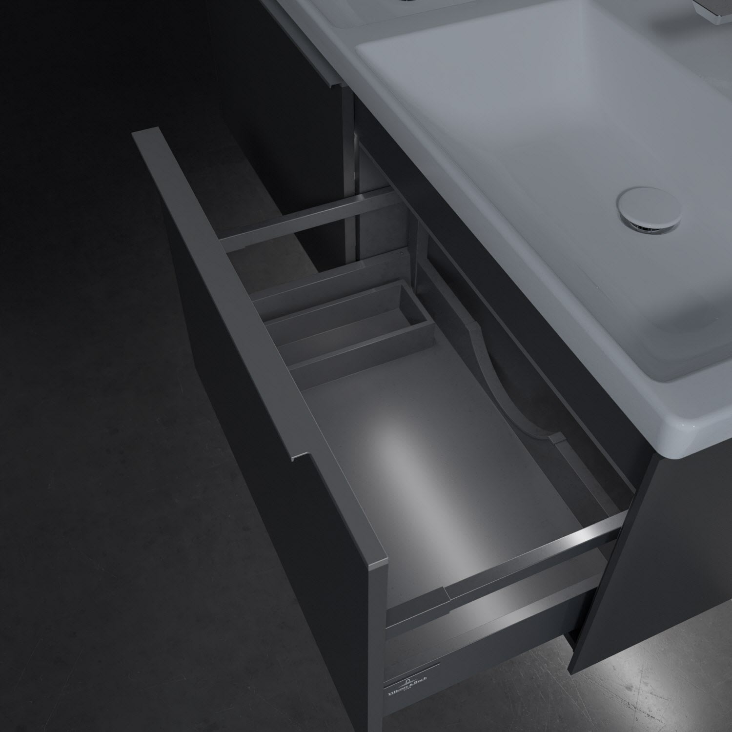 Villeroy & Boch Subway 3.0 Badmöbel-Set 130 cm mit Beleuchtung, 2 Auszüge, Doppelwaschtisch