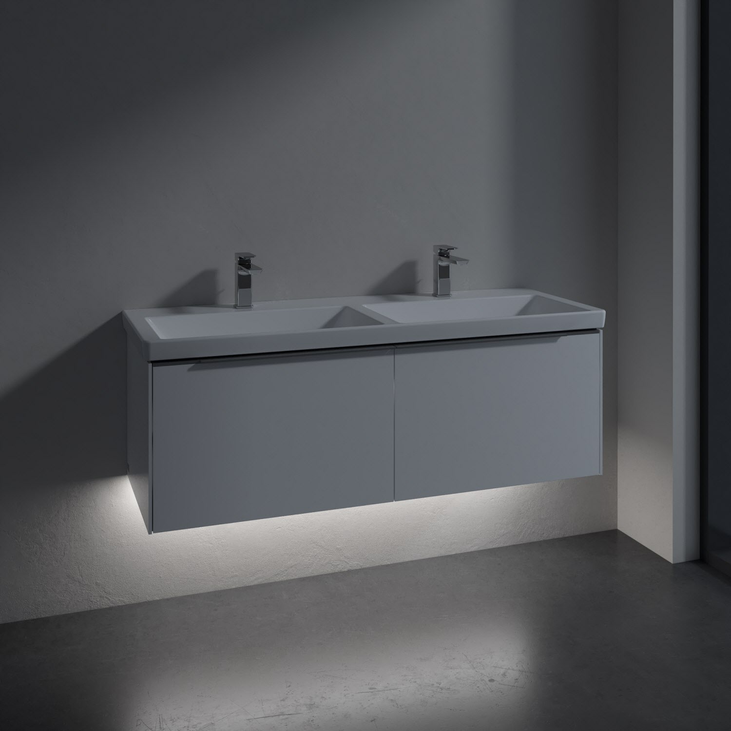 Villeroy & Boch Subway 3.0 Badmöbel-Set 130 cm mit Beleuchtung, 2 Auszüge, Doppelwaschtisch