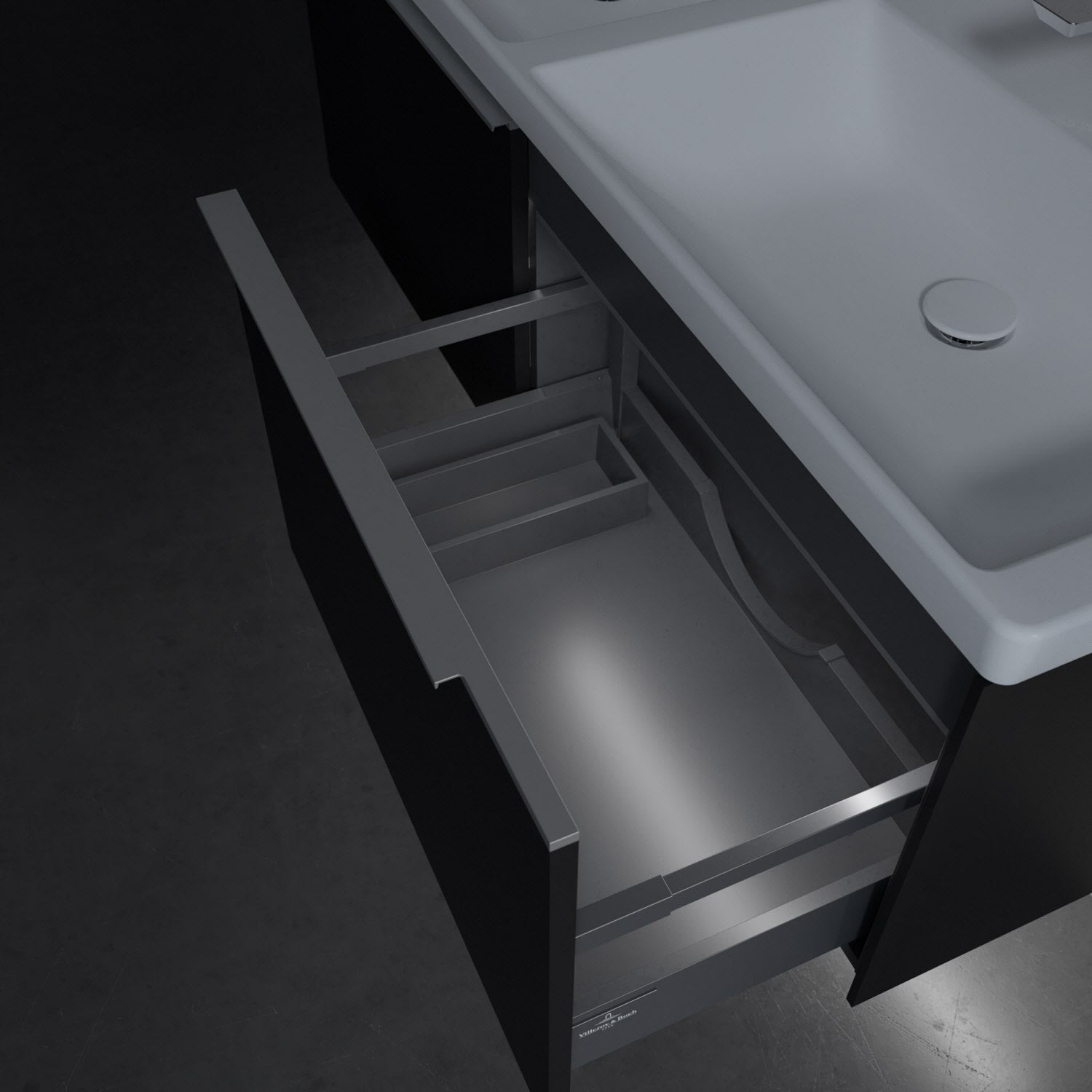 - kein Umfallen oder Verrutschen von Pflegeprodukten in den Schubladen dank rutschhemmendem Boden