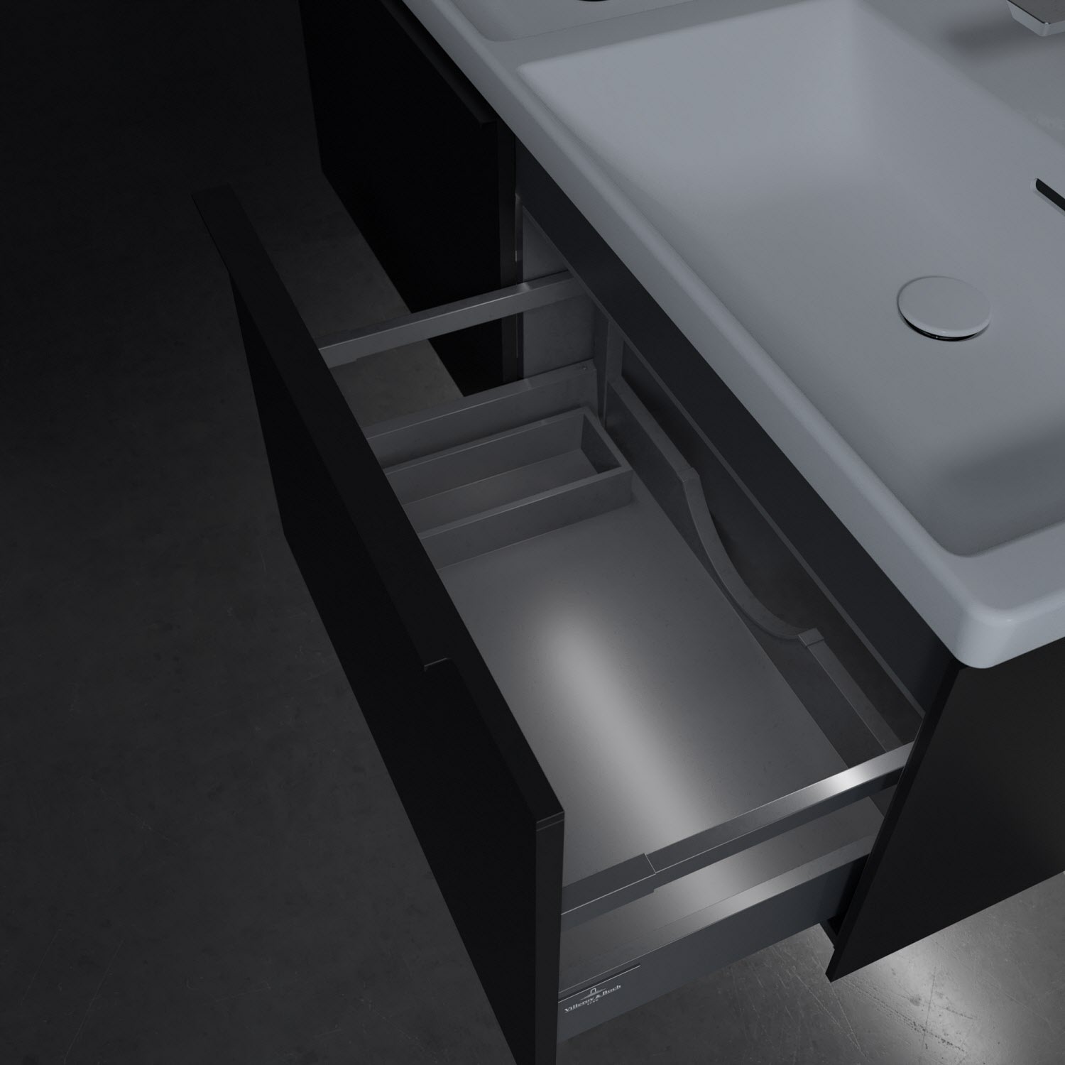 Villeroy & Boch Subway 3.0 Badmöbel-Set 130 cm mit Beleuchtung, Griff volcano black, 2 Auszüge, Doppelwaschtisch